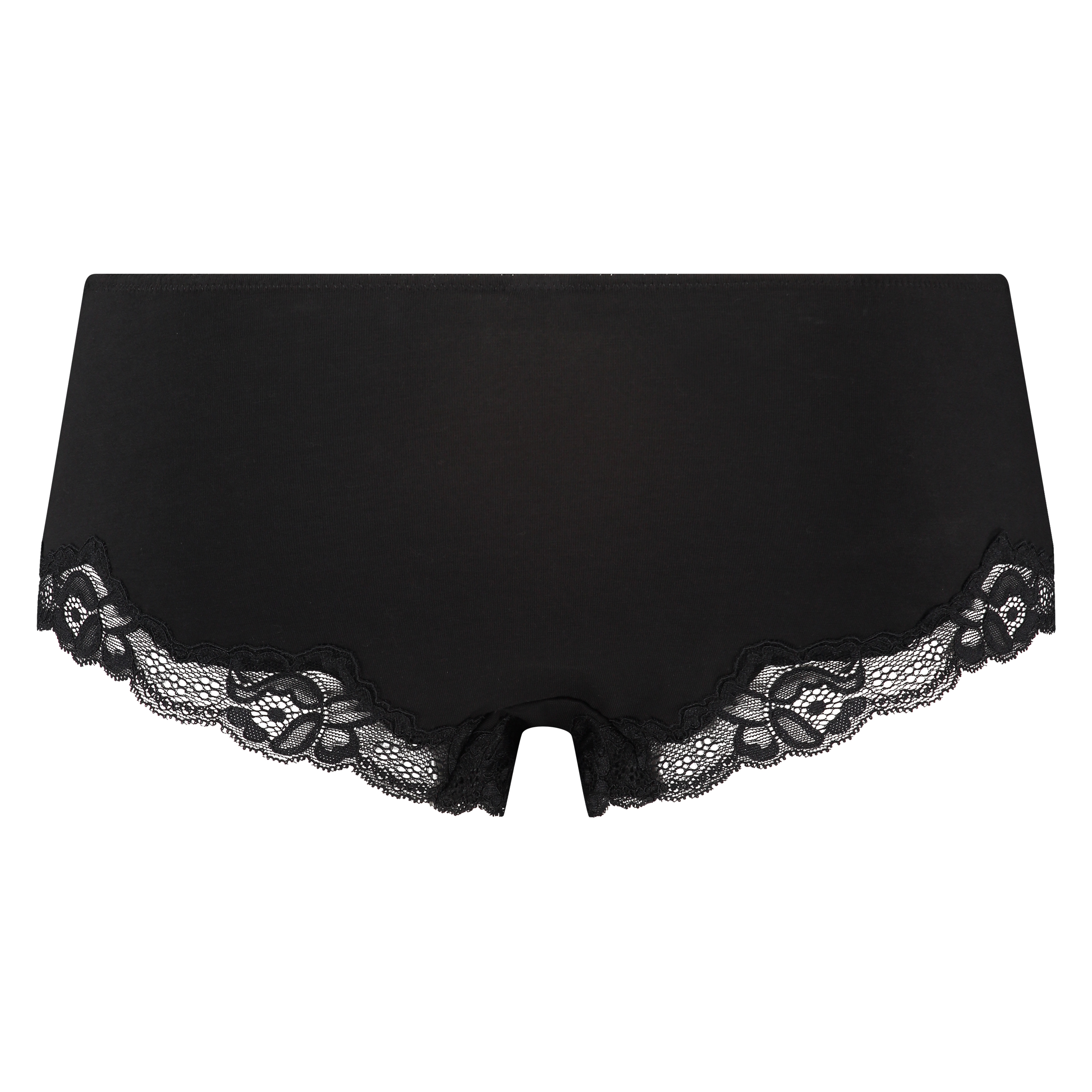 Den glatte mikrokvaliteten gjør at bokseren er maksimalt behagelig å ha på seg. Elegant utført med en blondekant og en sløyfe foran.