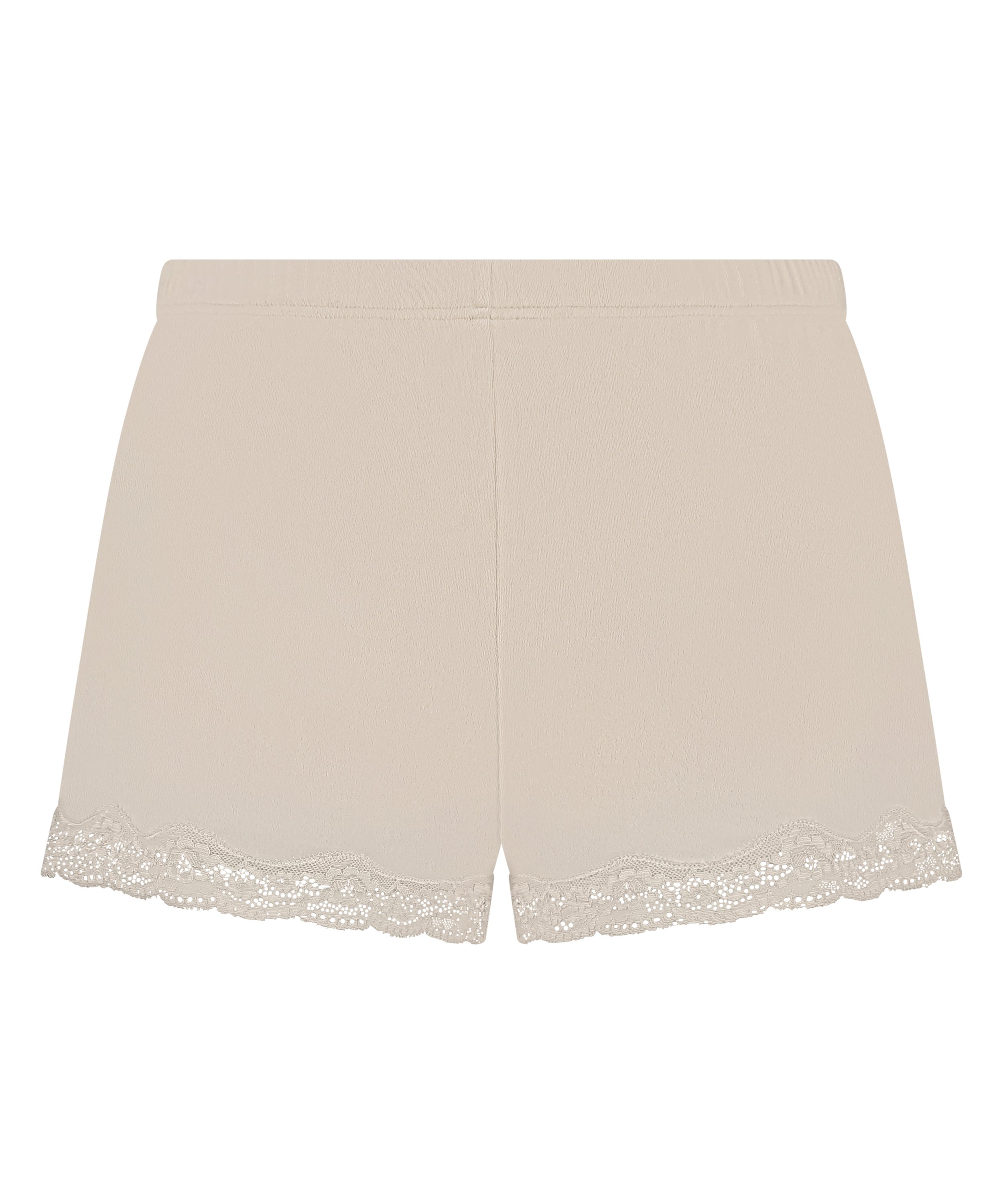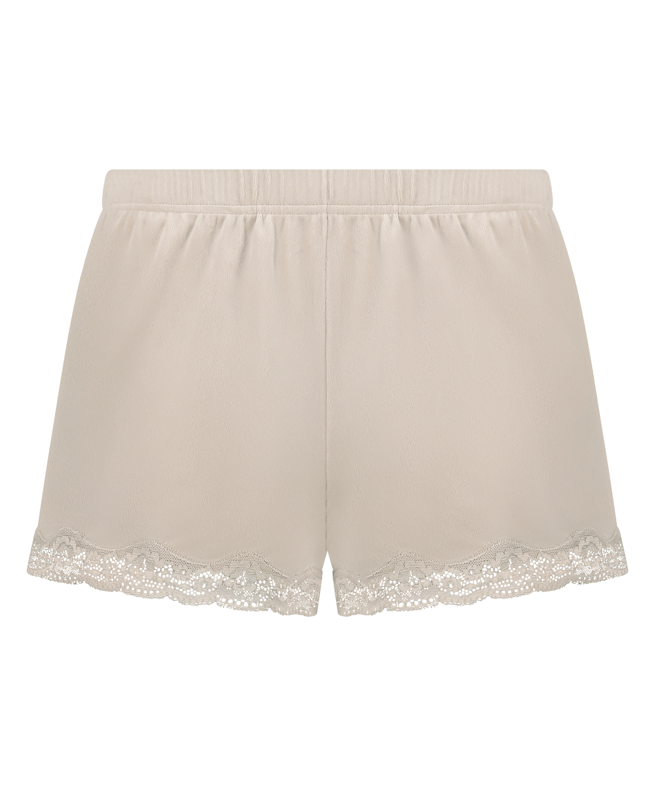 Unn deg komfort med våre velurshorts, perfekt for å slappe av med stil. Disse shortsene er laget av mykt velurstoff og føles like bra som de ser ut. De delikate blondedetaljene tilfører et snev av eleganse og femininitet, som hever dette lune basisplagget. Designet med en elastisk linning, gir de en komfortabel, fleksibel passform som beveger seg med deg.