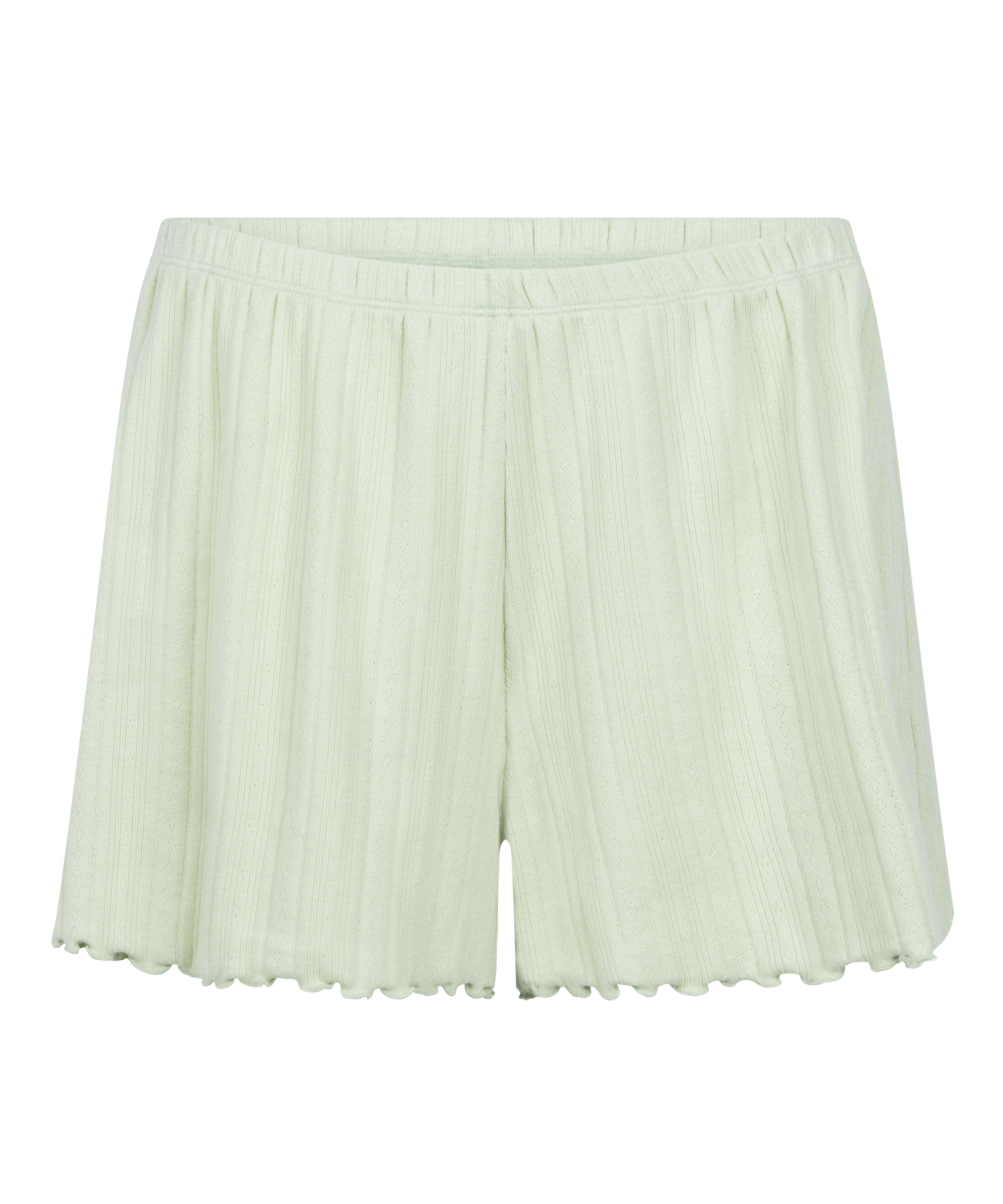 Søt, myk og som skapt for å slappe av med stil! Disse pointelle-shortsene har en komfortabel elastisk midje og lekne rysjer, det gjør dem til et drømmevalg for avslappede og hyggelige øyeblikk.