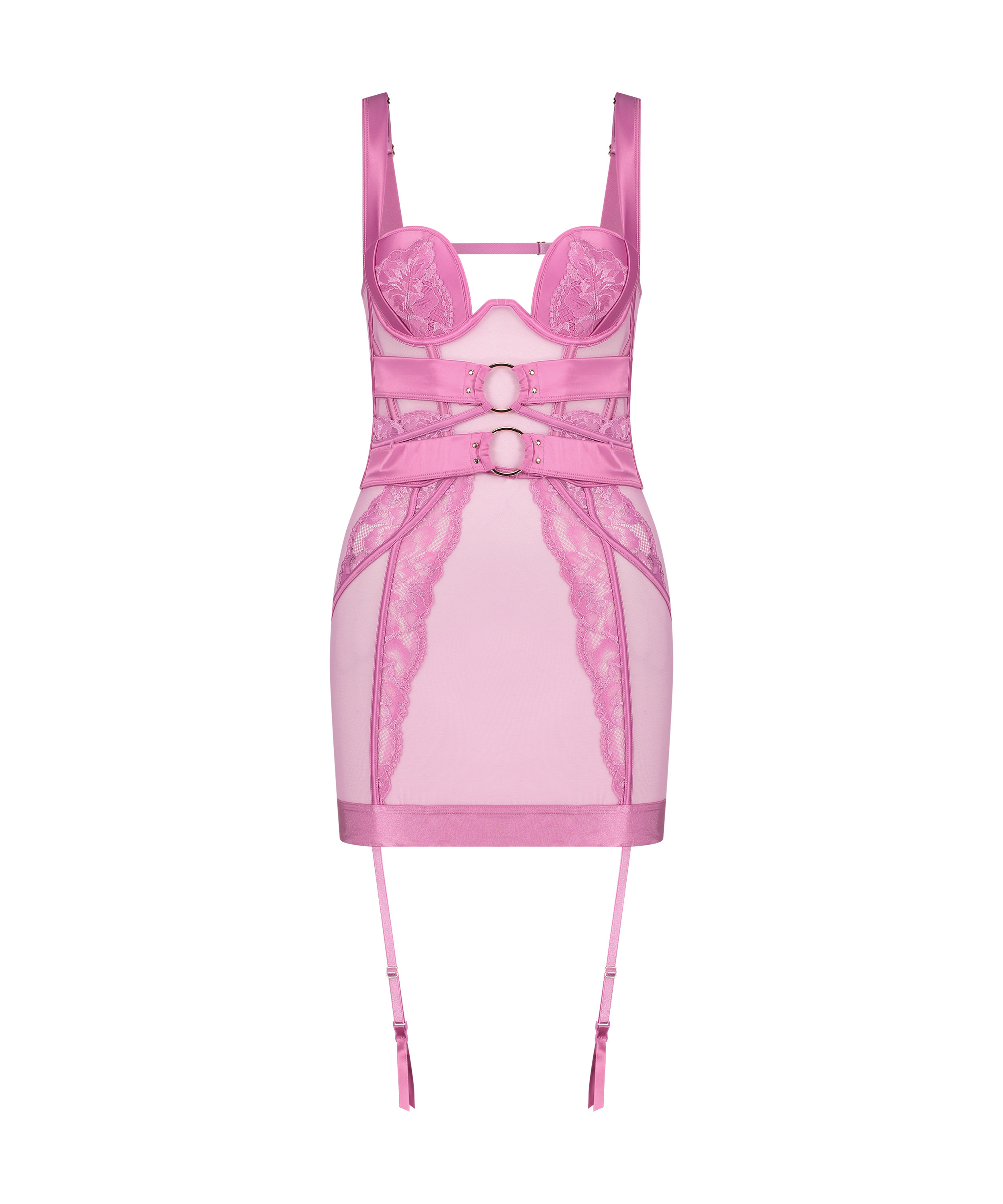 Denne fantastiske underkjolen er en krysning av en kjole og bustier, et dekadent plagg som garantert vil styrke dine forførende evner. Designet har spiler som skaper en flatterende silhuett, og en sexy satenglook og -feeling gir en feminin touch. Med strømpestropper slik at du kan style kjolen slik du ønsker. Kombiner med den matchende trusen og et par strømper for å oppnå en gjennomført, slående look. Del av Private-kolleksjonen.