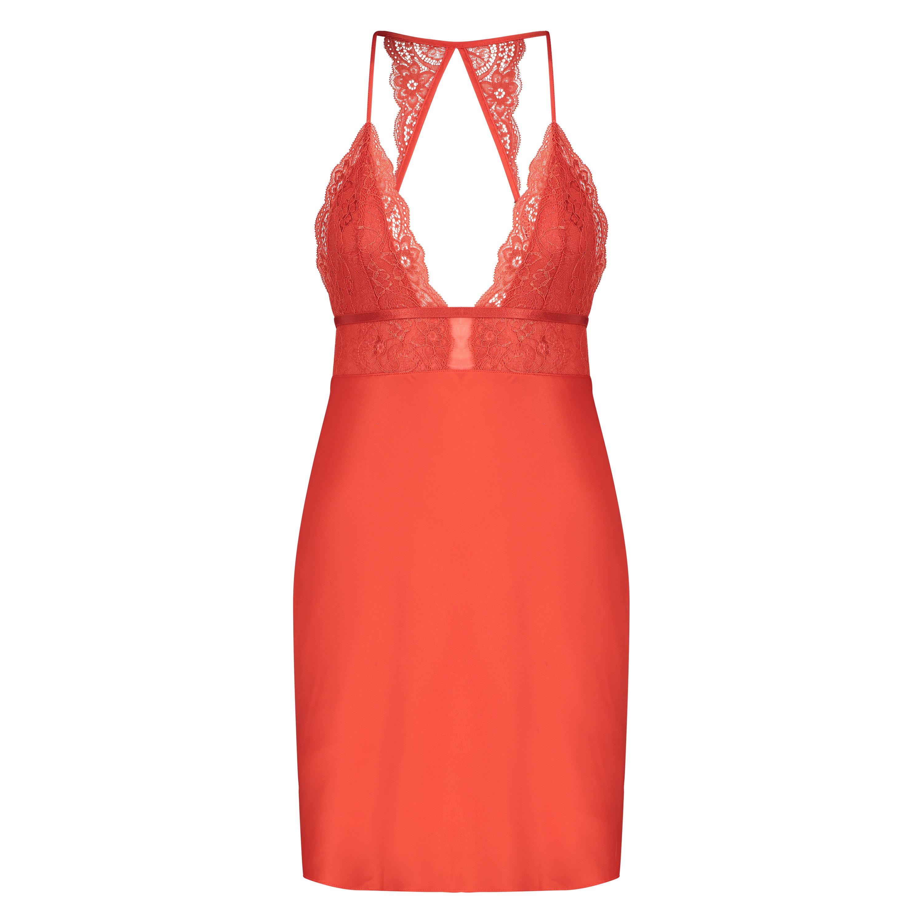 Føl deg klar til flørt og kyss i denne glamorøse slipkjolen! Denne slipkjolen har stoff som ser ut og kjennes som sateng og pynt av blonder.