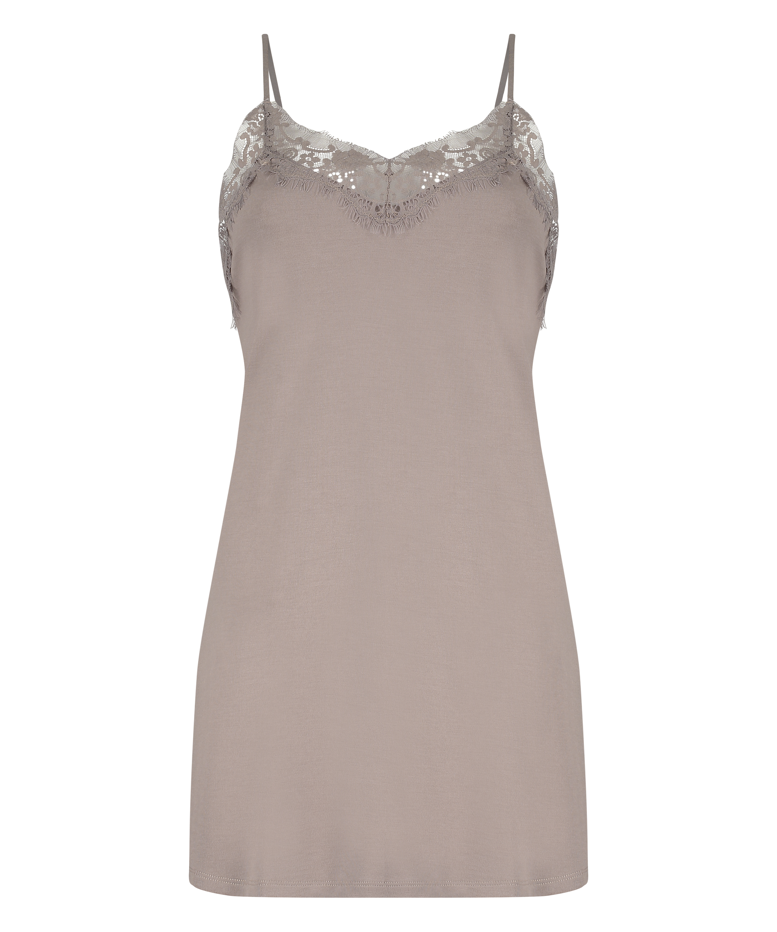 Ha det komfortabelt i denne nattkjolen! Lagd av et svært mykt og luftig materiale for komfortens skyld. Med elegante blondedetaljer. Kombinér med andre plagg!