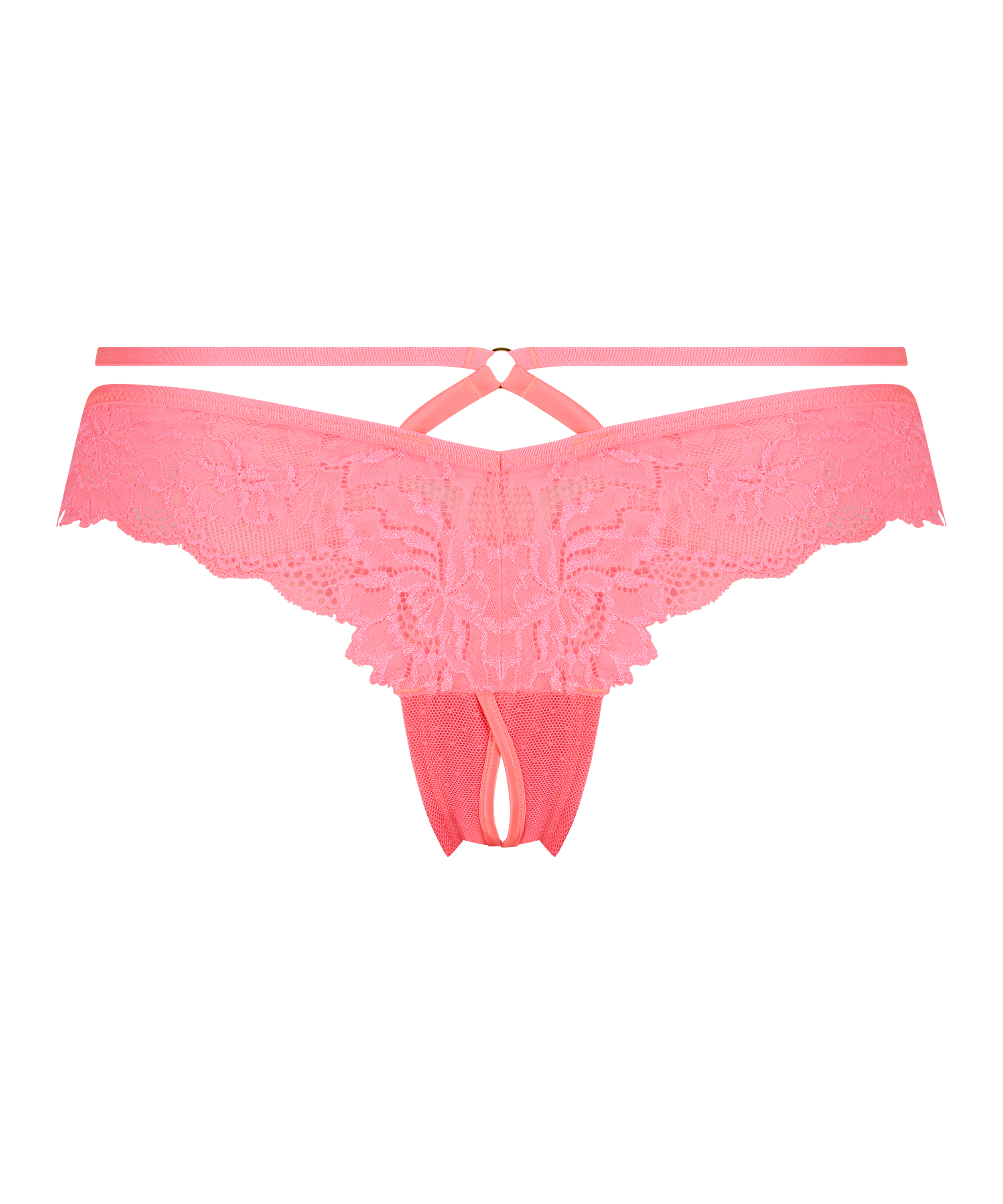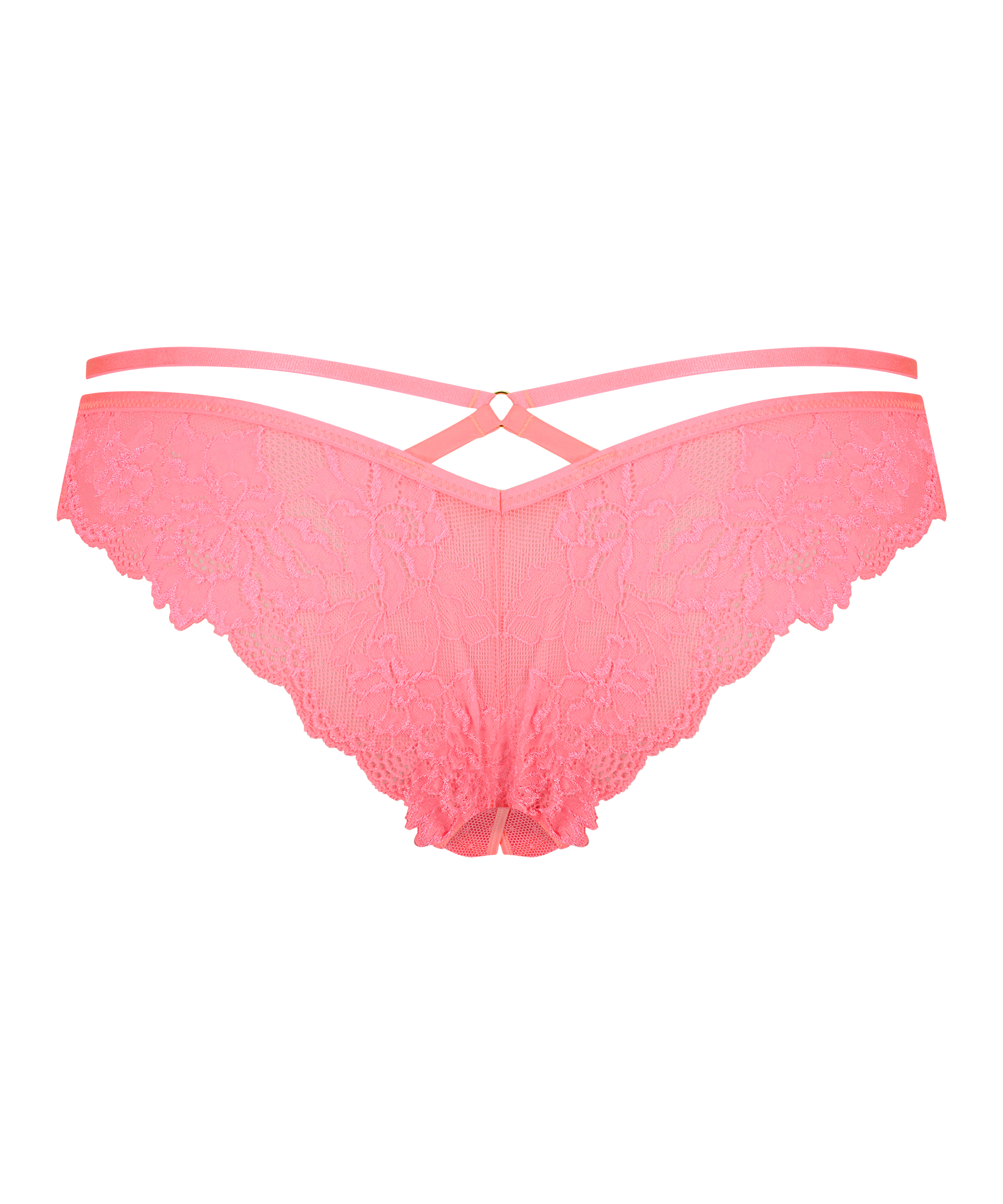 Sats på et sexy, stroppfint utseende med denne brasilianske trusen med ekstra stropper. Den er pyntet med blonder for å se enda mer sexy ut. Du kommer til å se uimotståelig ut.