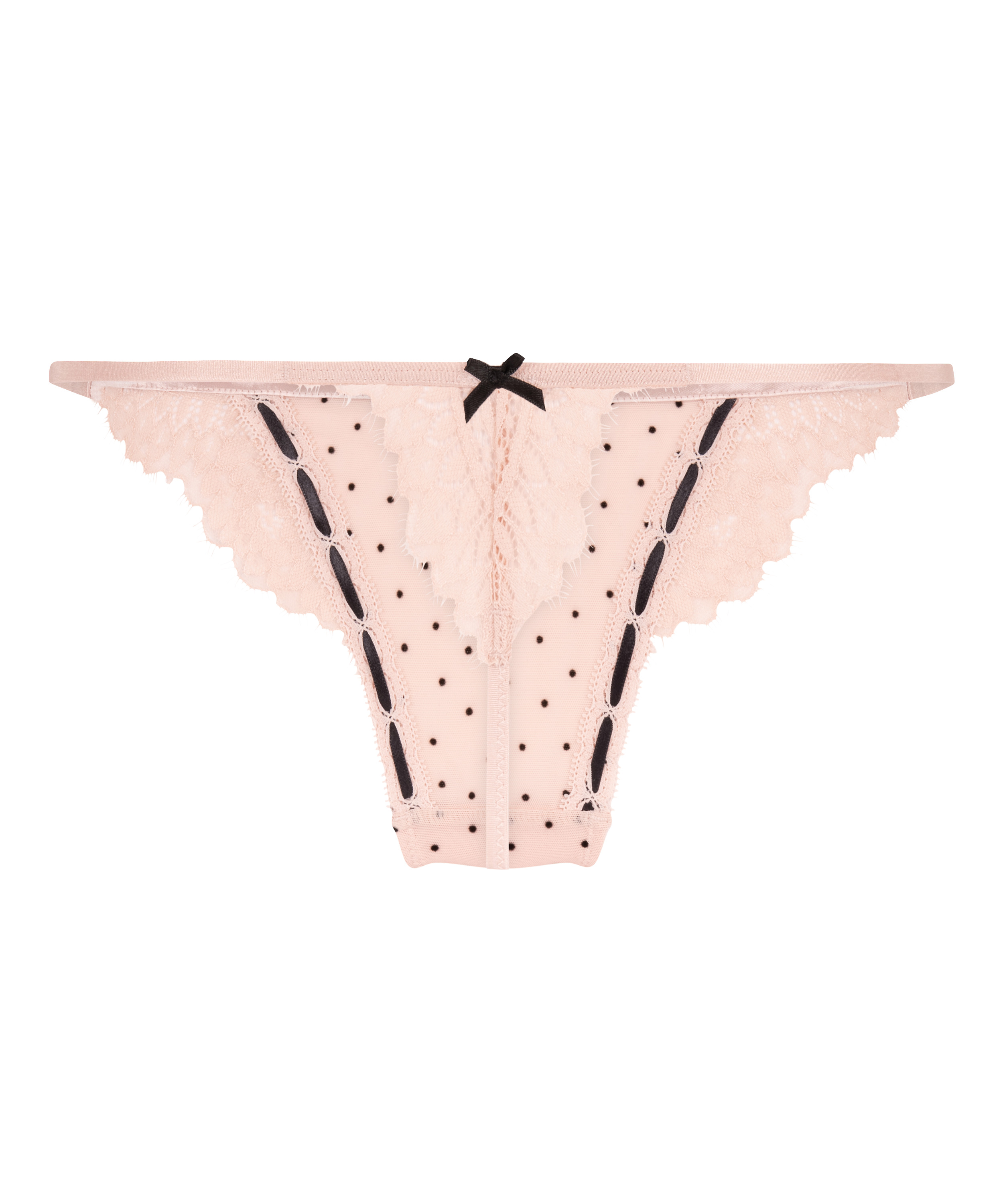 Lett og feminin, vår Dorothy string er en perfekt blanding av pent og praktisk. Forsiden har prikkete netting, mens blondene bak gir et snev av eleganse. Kombiner med matchende BH for en gjennomført look.