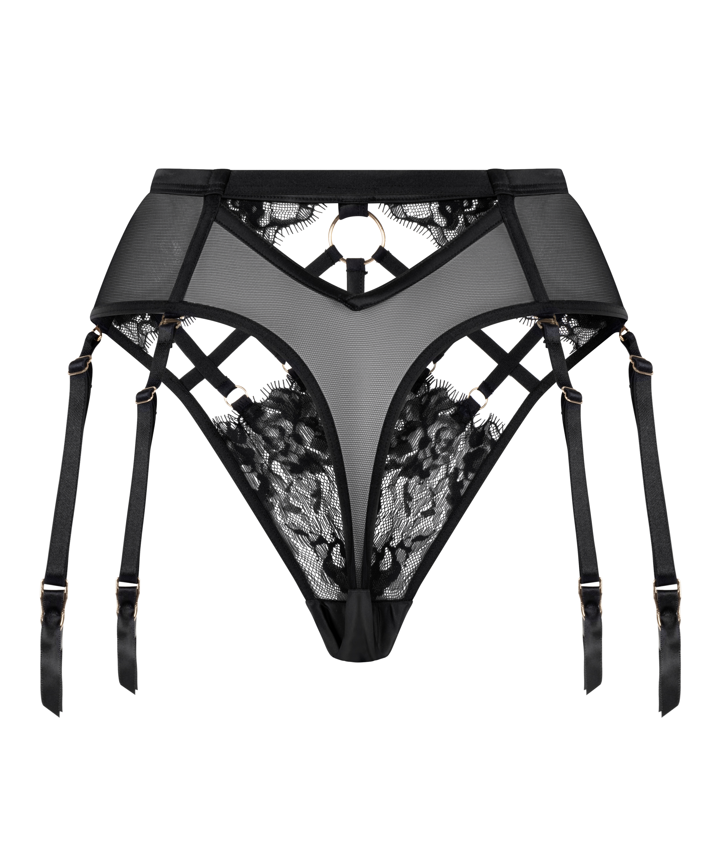 Skru opp varmen med Nienke-stringen, designet for å både smigre og fengsle. Med høy skjæring og høy midje får du en lengre silhuett. Blondene tilfører et snev av romantikk, og de utskjærte detaljene setter et dristig preg på stringen. Til slutt har den avtakbare suspenders for en allsidig stil. Kombiner med den matchende BH-en for en gjennomført look.