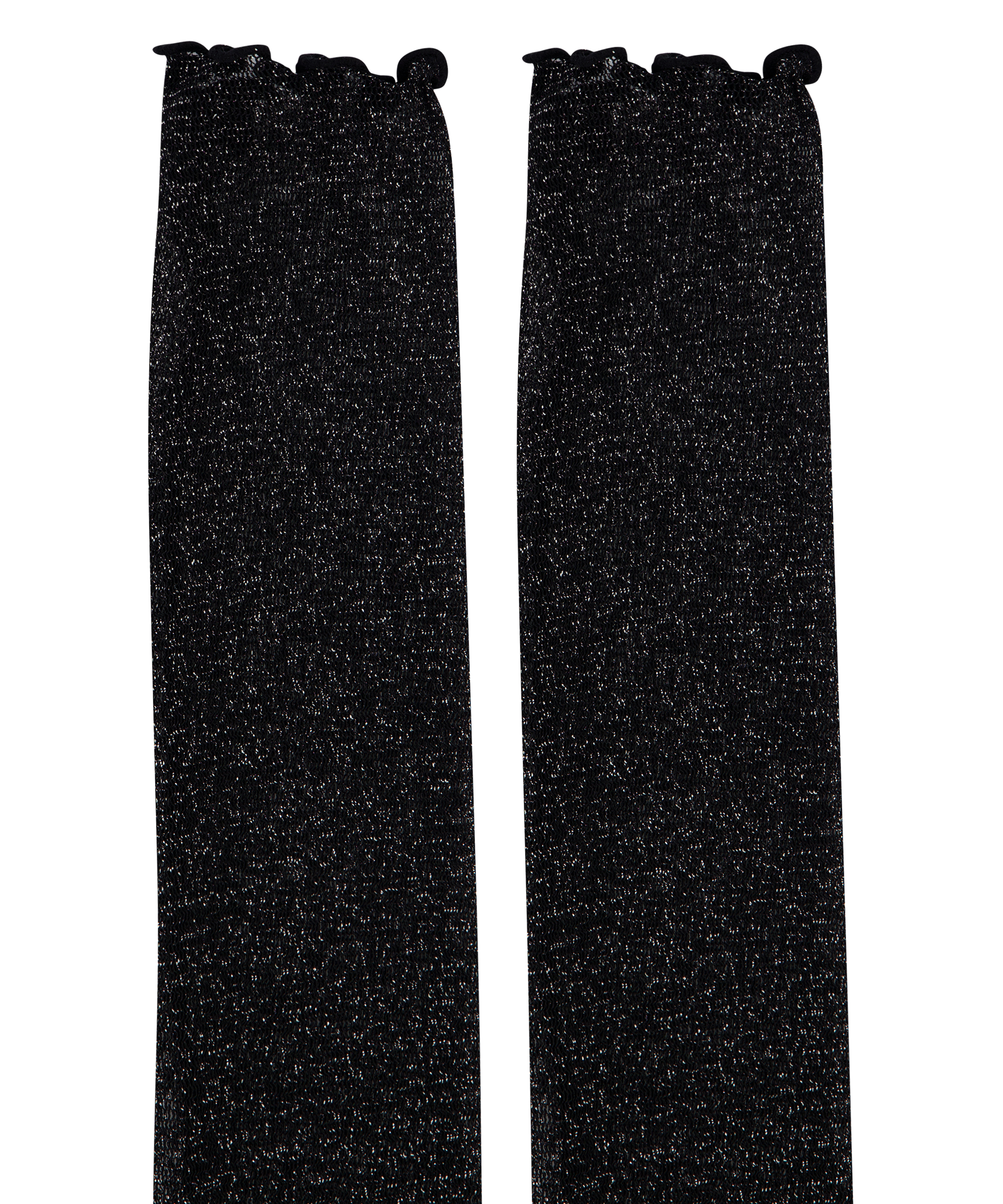 Disse knestrømpene er både elegante og glamorøse, det er en fremtredende kontrast mellom det gjennomsiktige materialet og den subtilt glitrende overflaten.