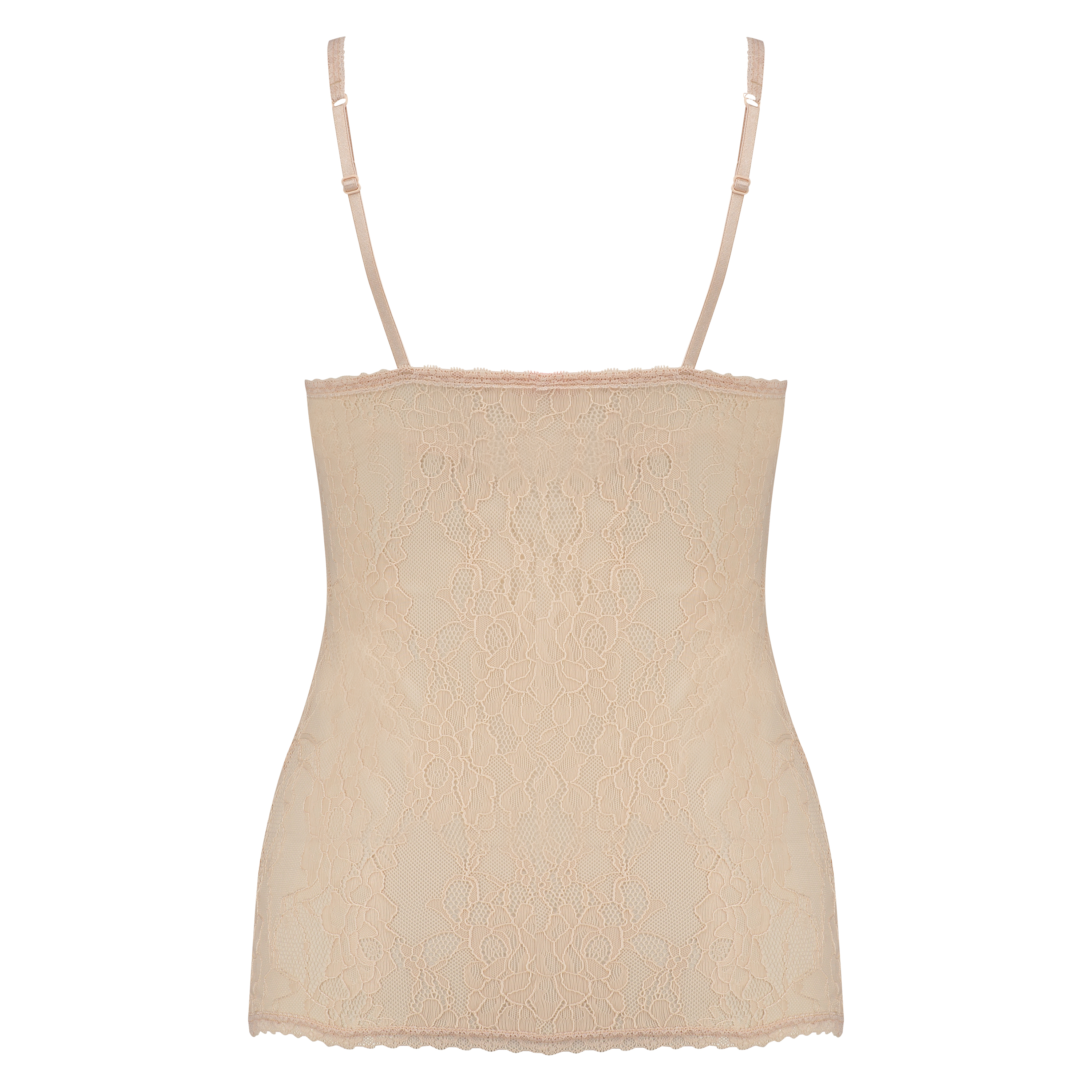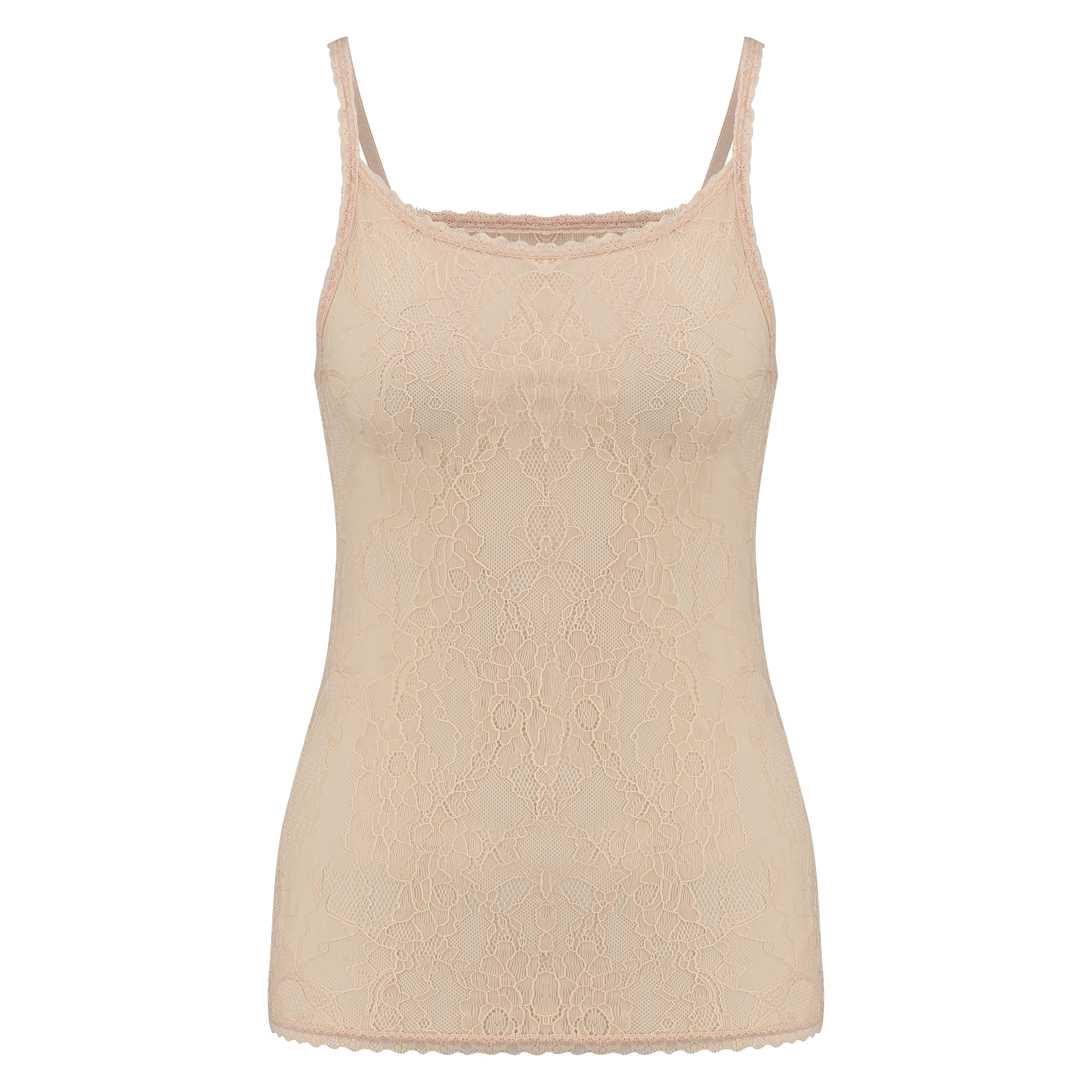 This top features all-over lace. Two layers of the fabric are used so that the top is only slightly see-through.