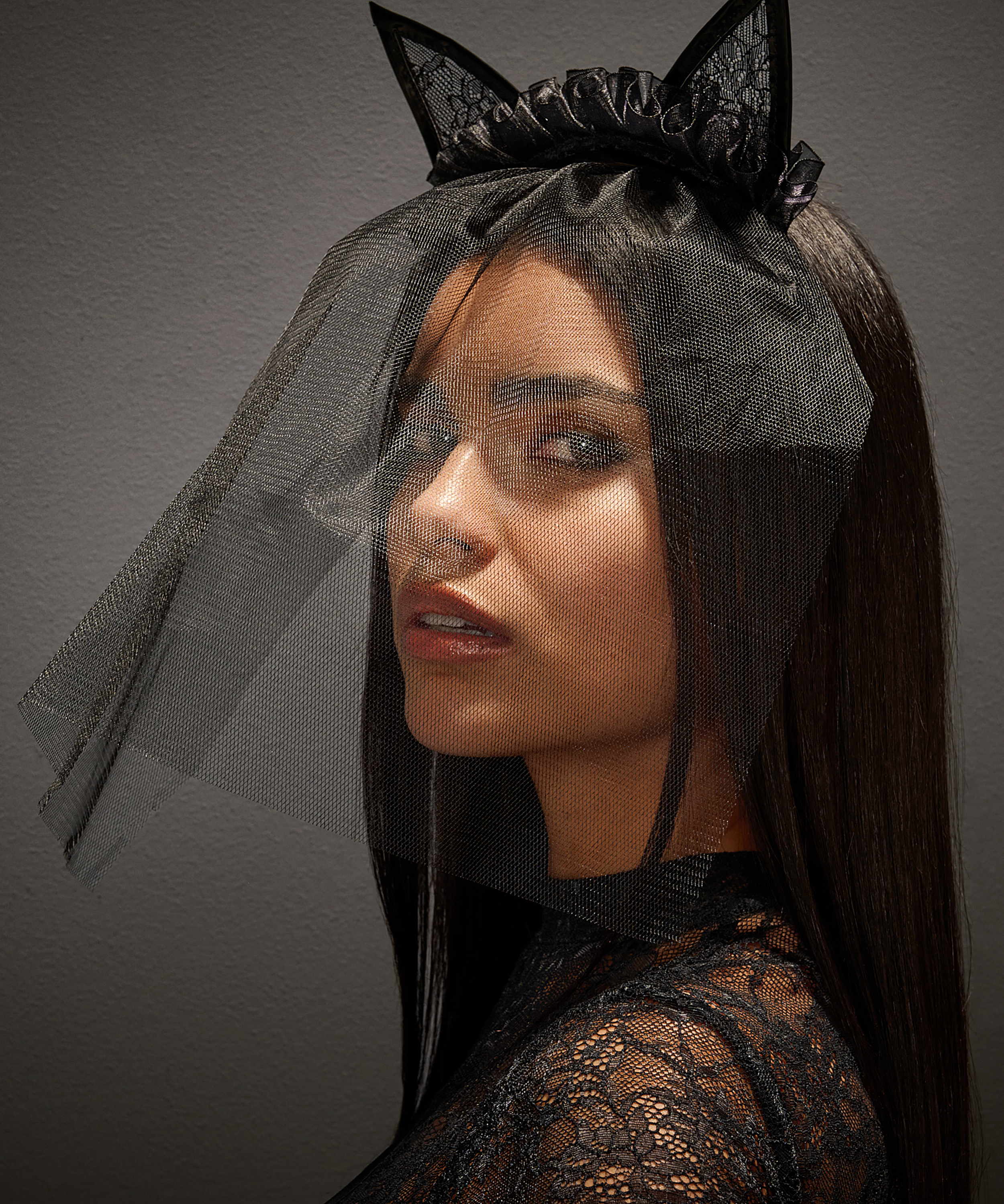 Vil du piffe opp hverdagen? Prøv denne sexy katte-drakten! Med et hårbånd med katteører i blonder og nettingslør og sele med stropper Del av vår Private-kolleksjon.