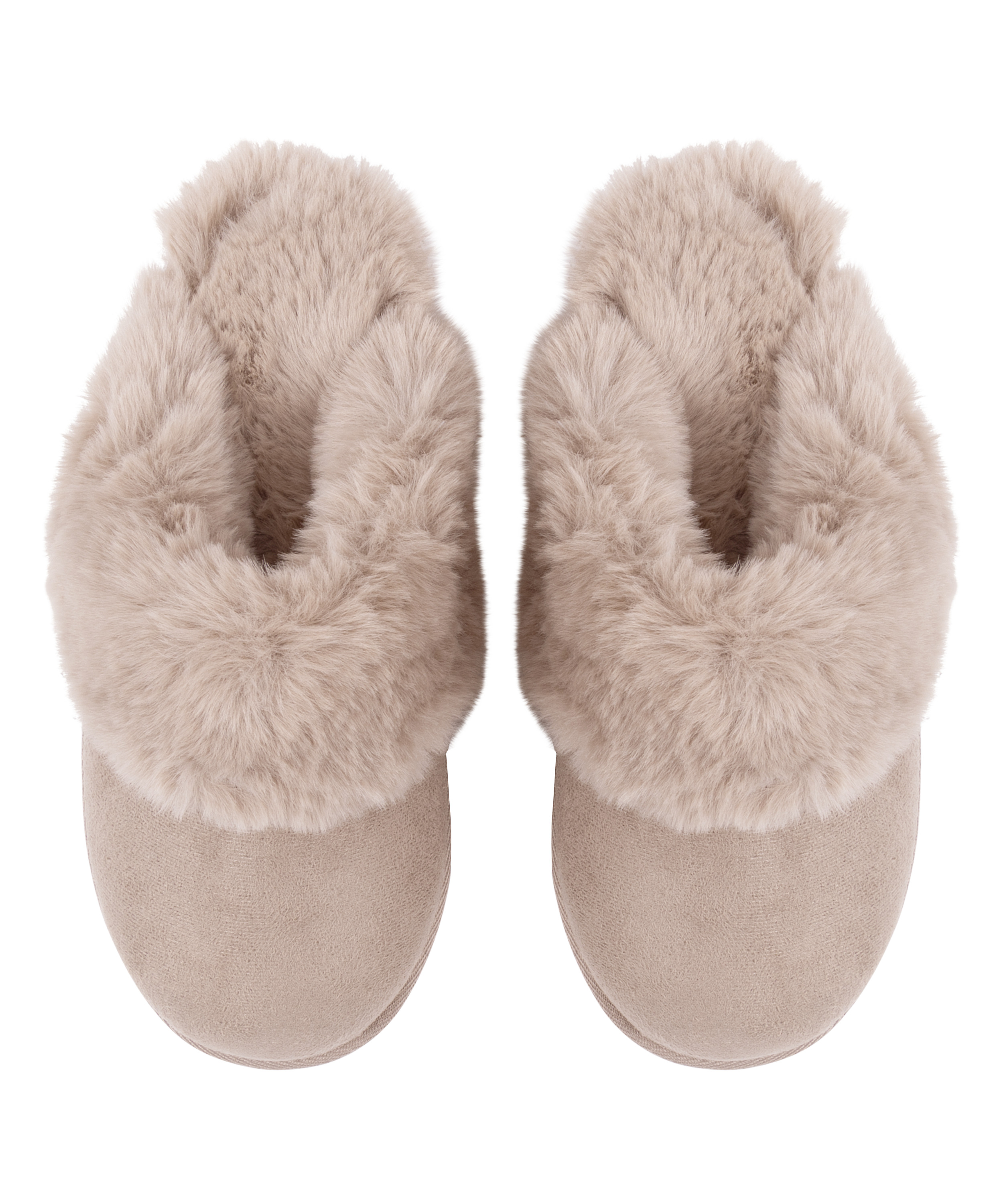 Keep your feet nice and warm in these slippers! These suede-effect slippers have a soft footbed and fluffy details. Combine with a matching nightwear set to complete your look!