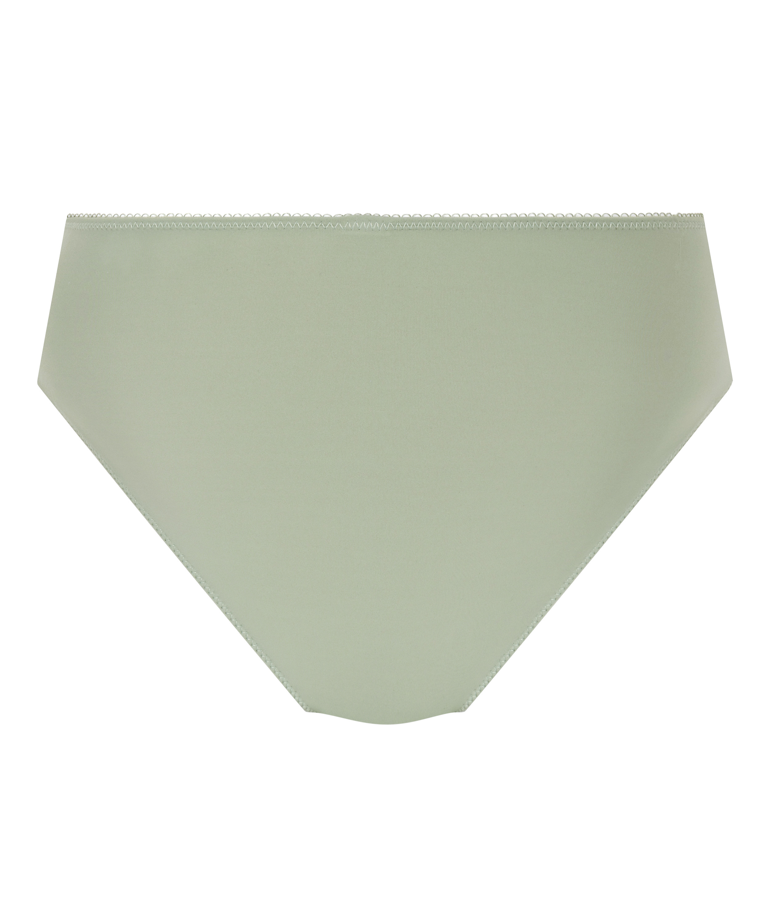 Denne høye trusen er laget av et føyelig, glatt stoff som gir en nydelig passform, og den er dekorert med blomsterbroderinger og en liten sløyfe foran.