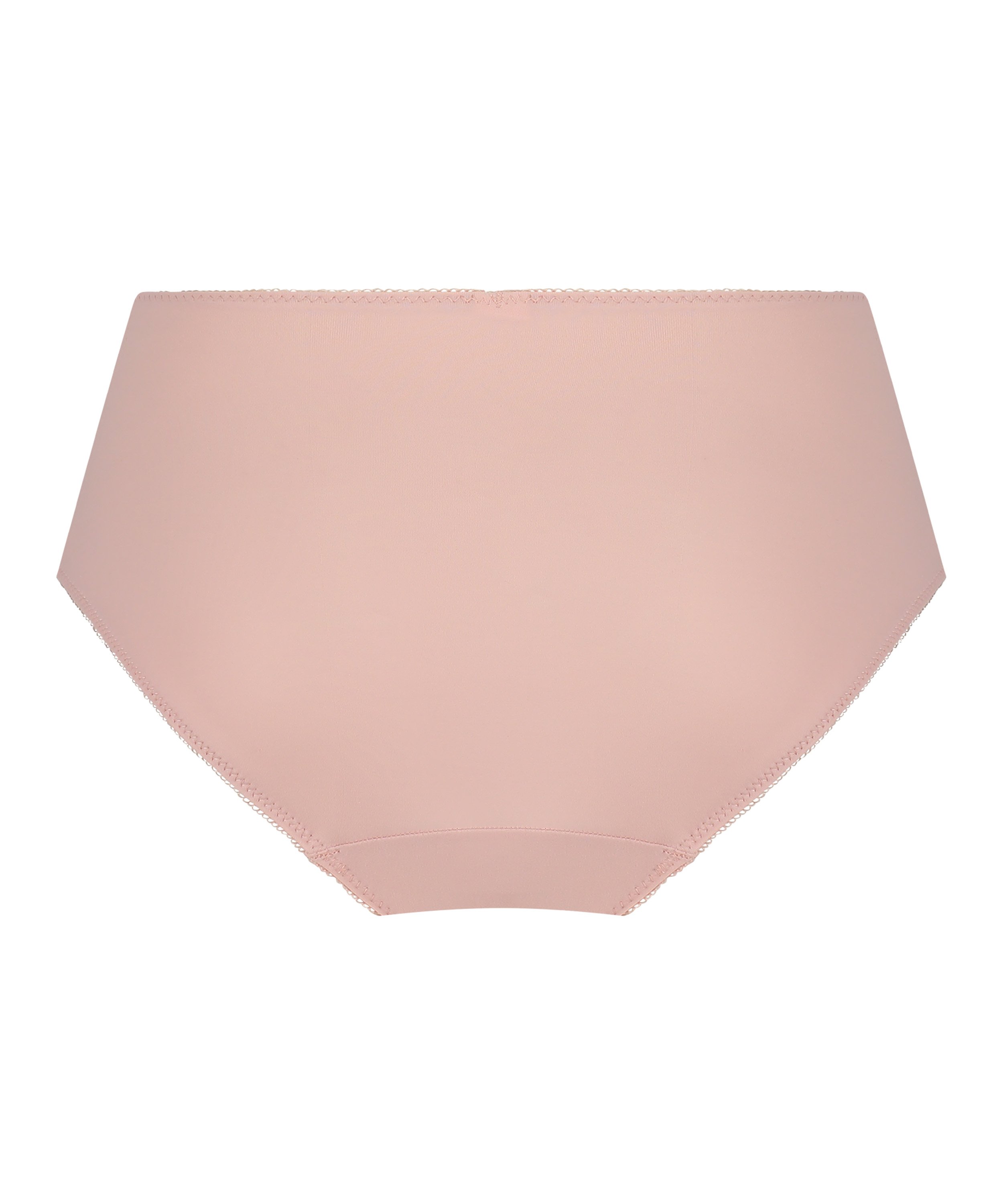 Denne høye trusen er laget av et føyelig, glatt stoff som gir en nydelig passform, og den er dekorert med blomsterbroderinger og en liten sløyfe foran.