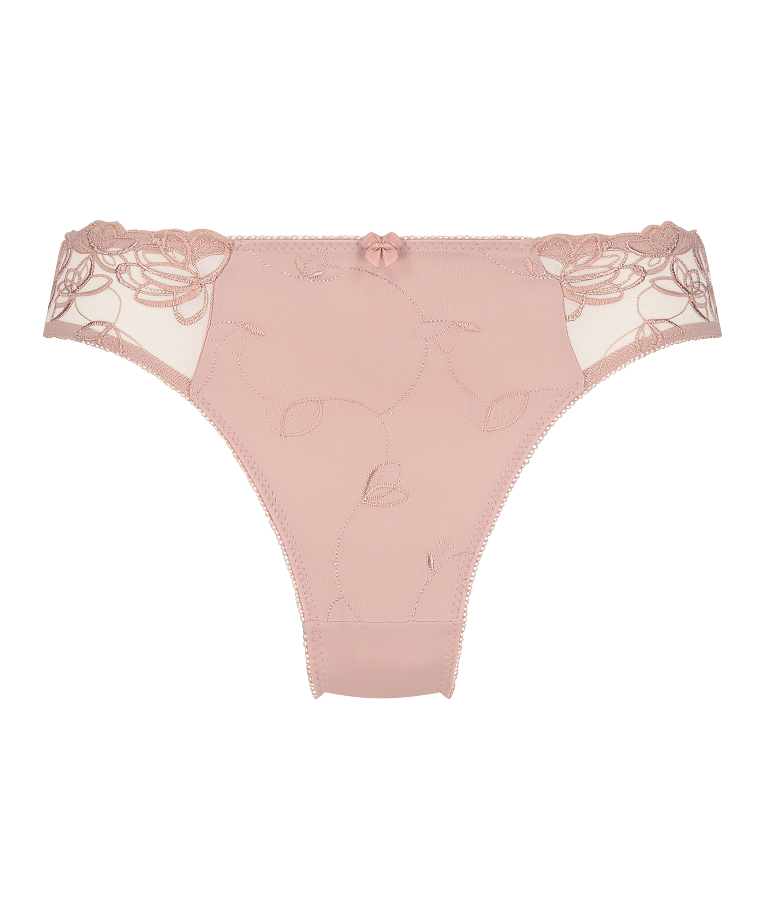 Denne høye trusen er laget av et føyelig, glatt stoff som gir en nydelig passform, og er dekorert med blomsterbroderinger og en liten sløyfe foran.