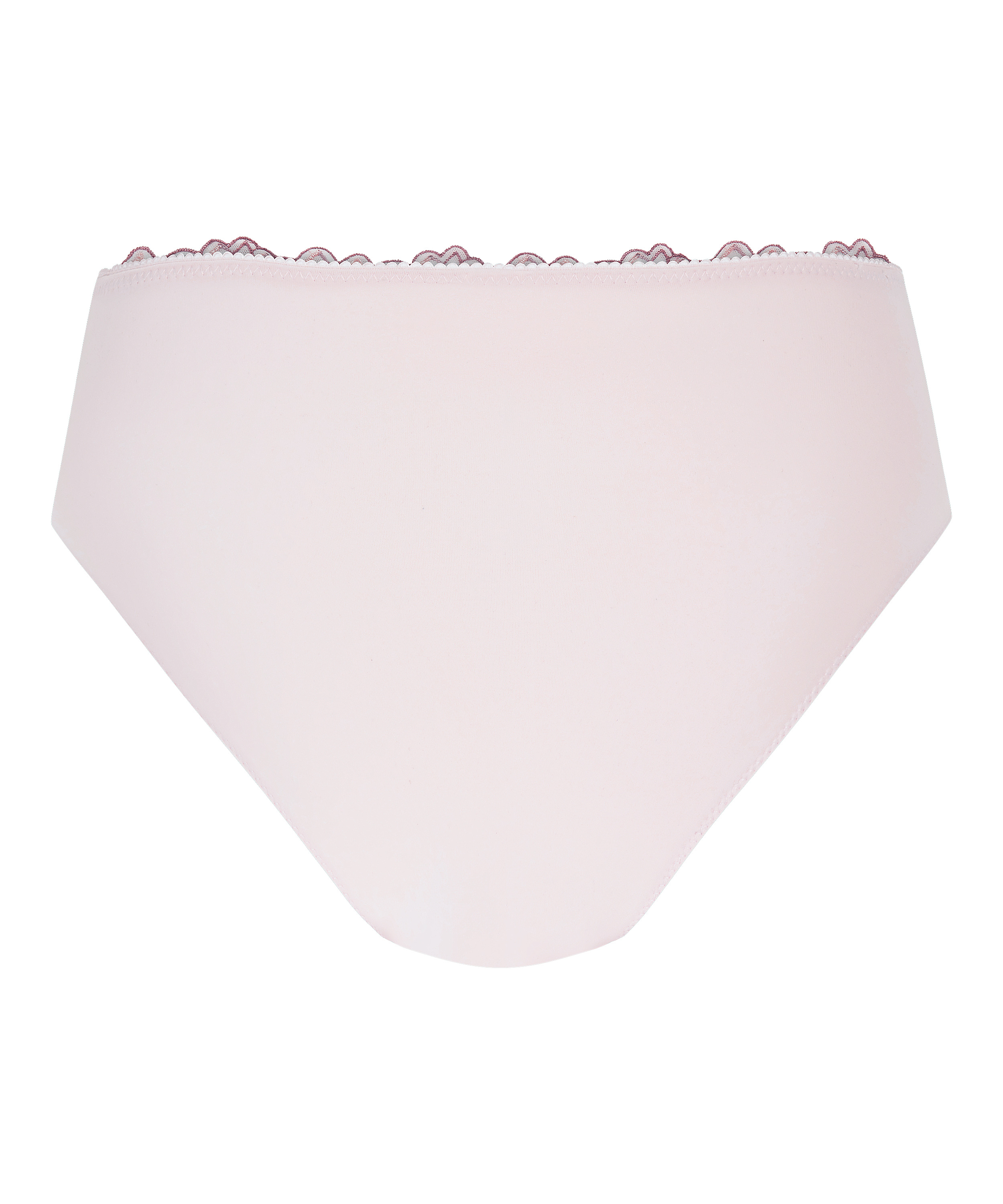 Denne høye trusen er laget av et føyelig, glatt stoff som gir en nydelig passform, og den er dekorert med blomsterbroderinger og en liten sløyfe foran.