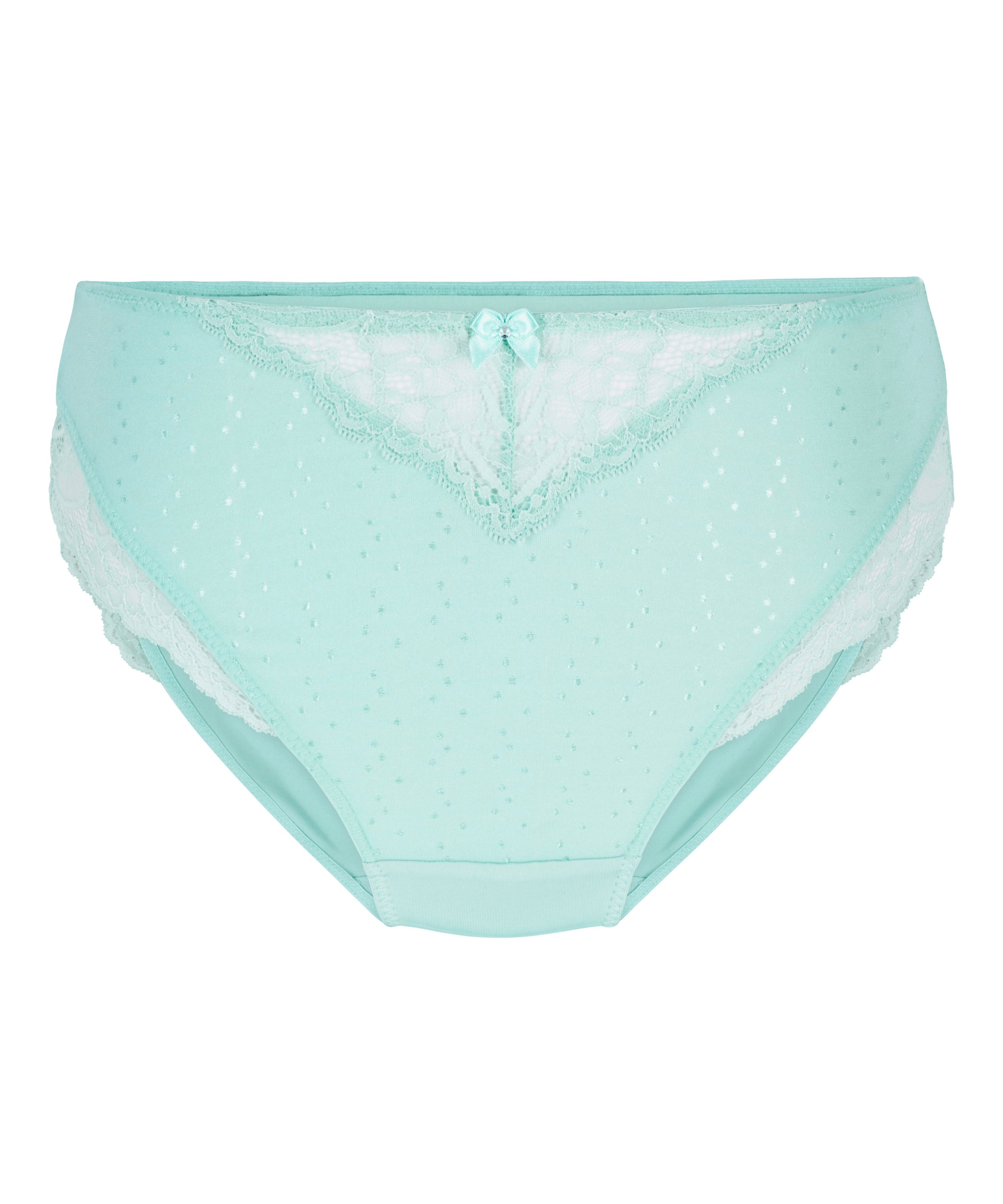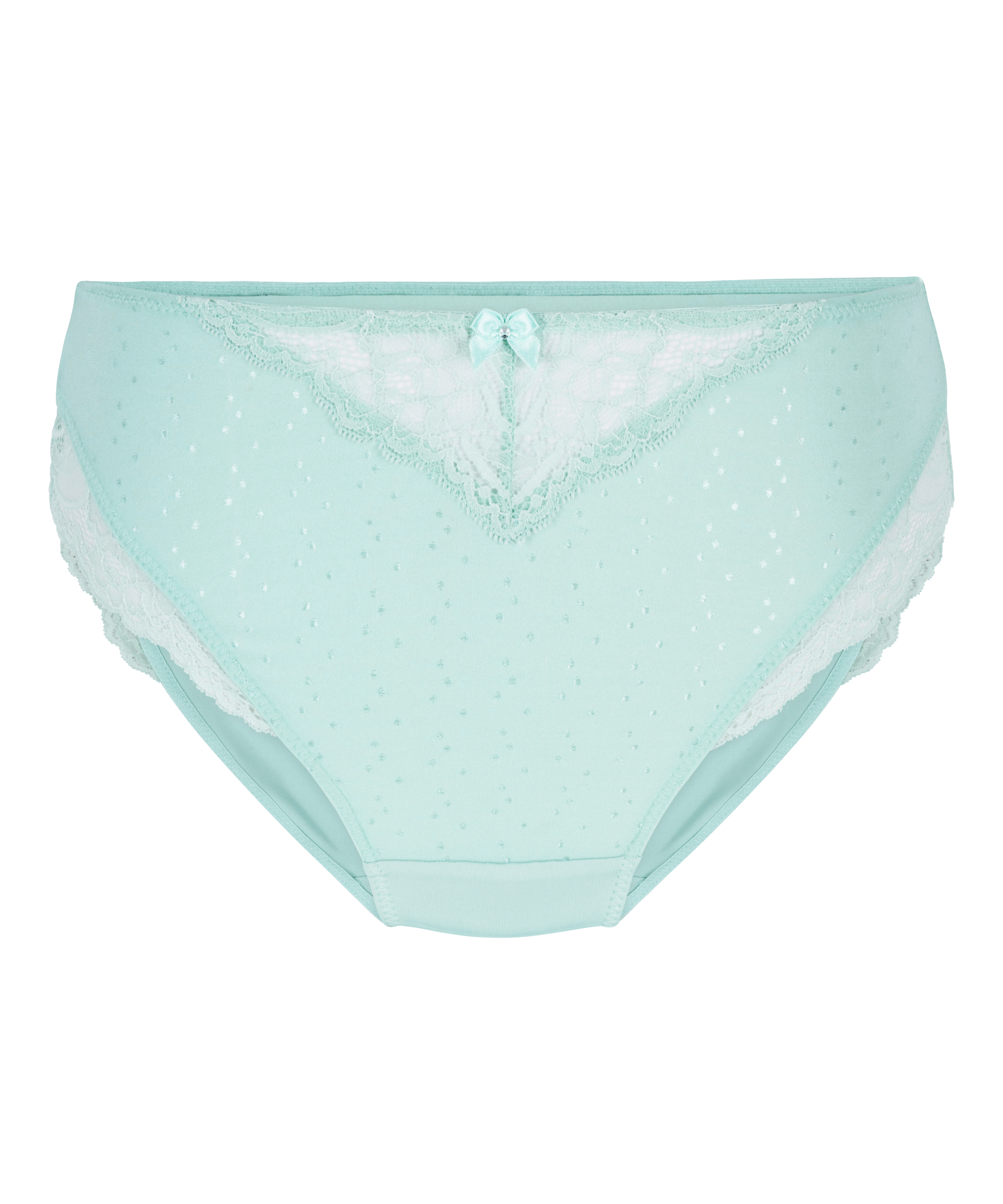 Denne høye trusen er sexy og også veldig behagelig. Forsiden er laget av mikrotøy og delvis av blonder.