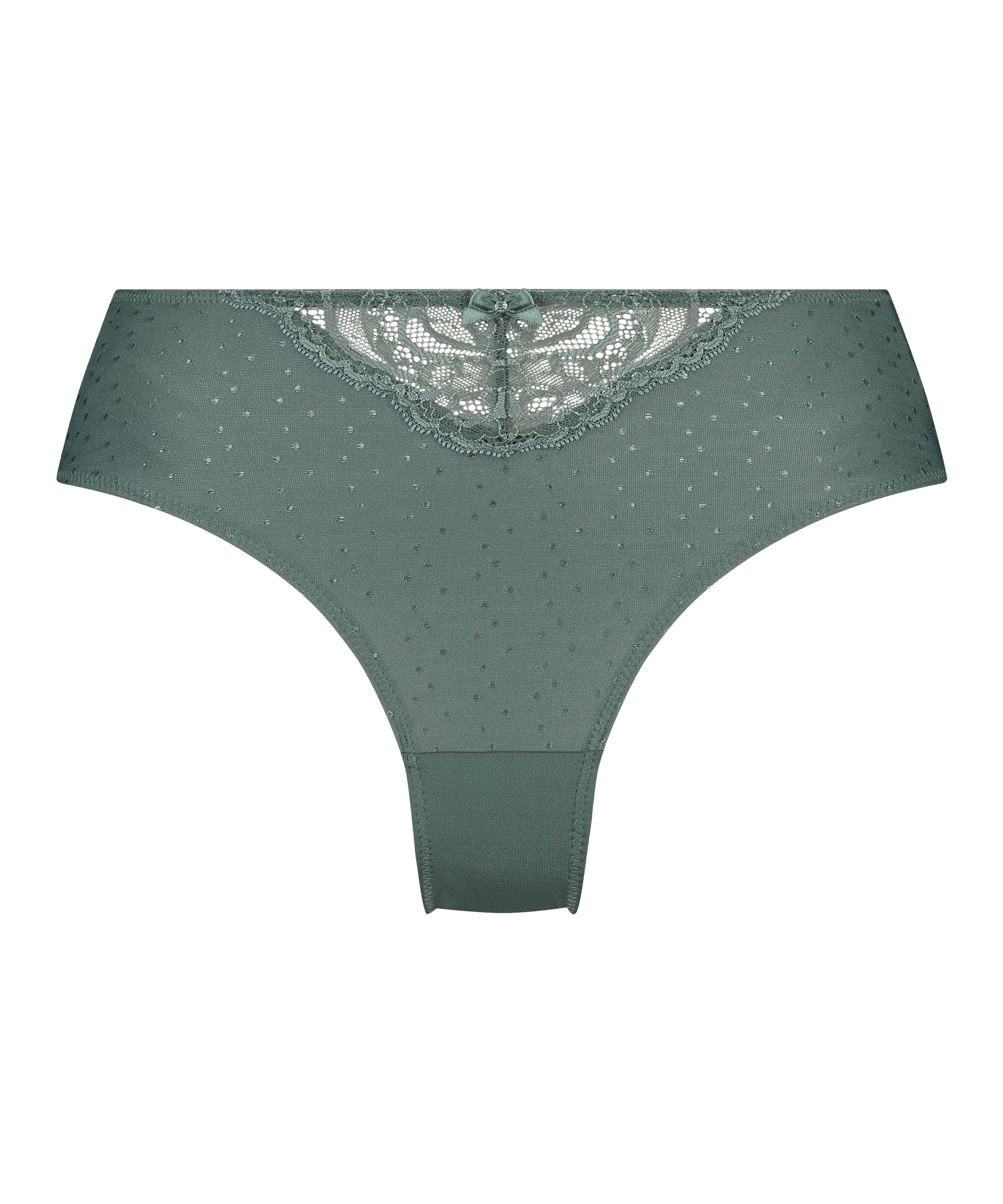 Denne høye trusen er sexy og også veldig behagelig. Forsiden er laget av mikrotøy og delvis av blonder.