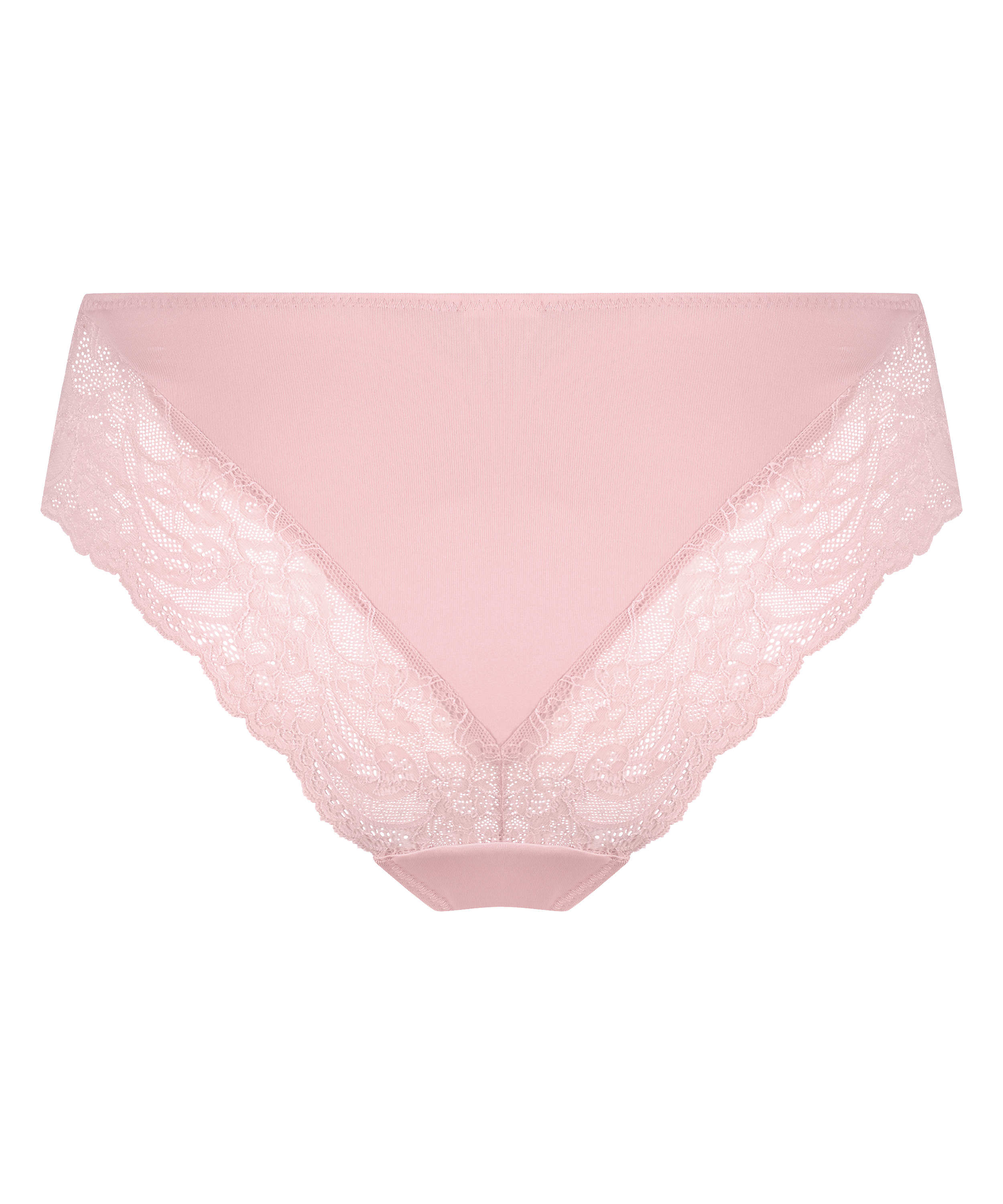 Disse trusene har blondekanter rundt benåpningene og en liten sløyfe for et elegant utseende. Kombiner med de matchende BH-ene for et komplett undertøyssett.