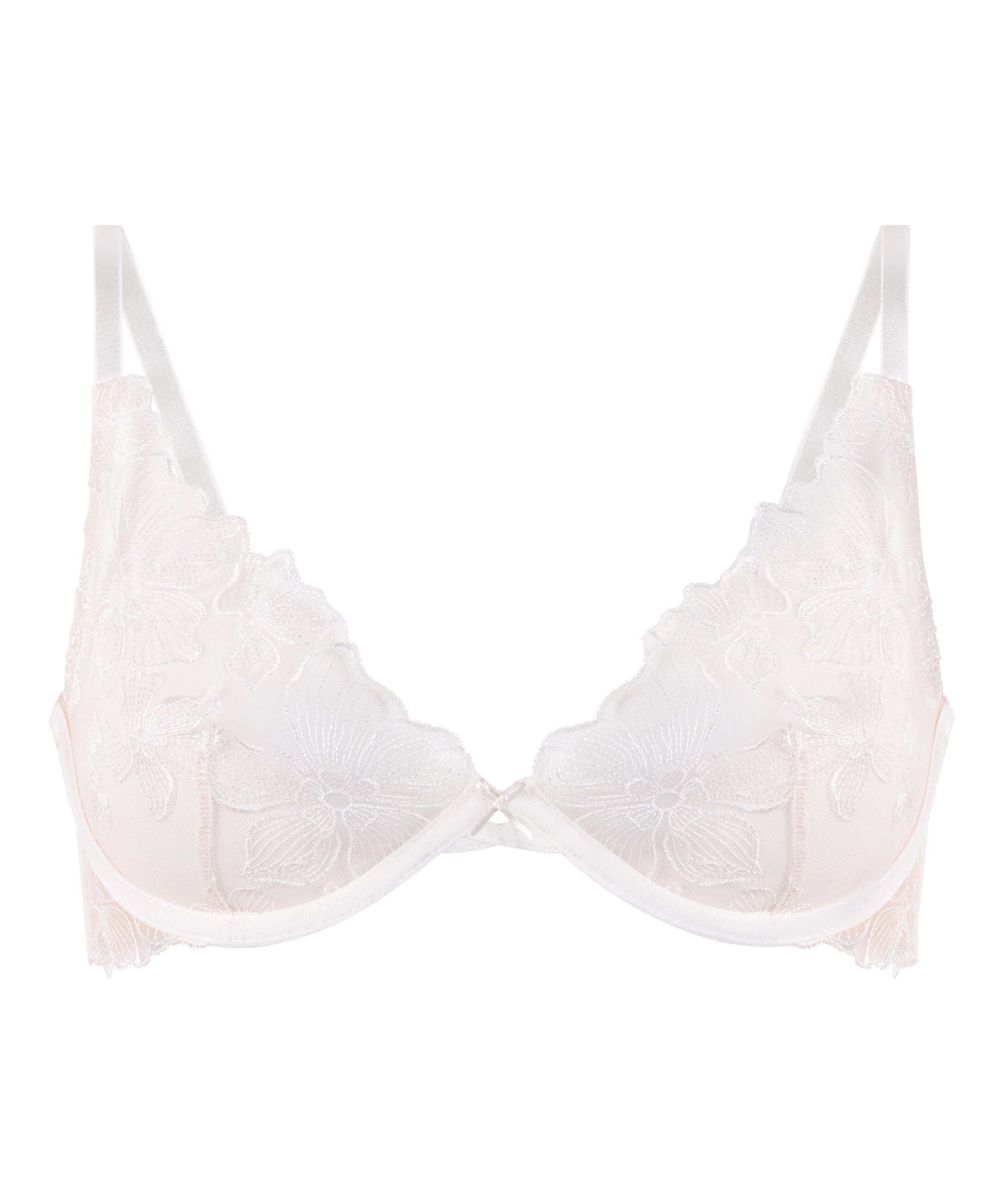 Omfavn naturlig eleganse med vår Lauren-BH, en delikat blanding av komfort og femininitet. BH-en har blomstrete blonder som fremhever skålene på en vakker måte og gir et romantisk og tidløst utseende. Kombiner med matchende truse for en gjennomført look.