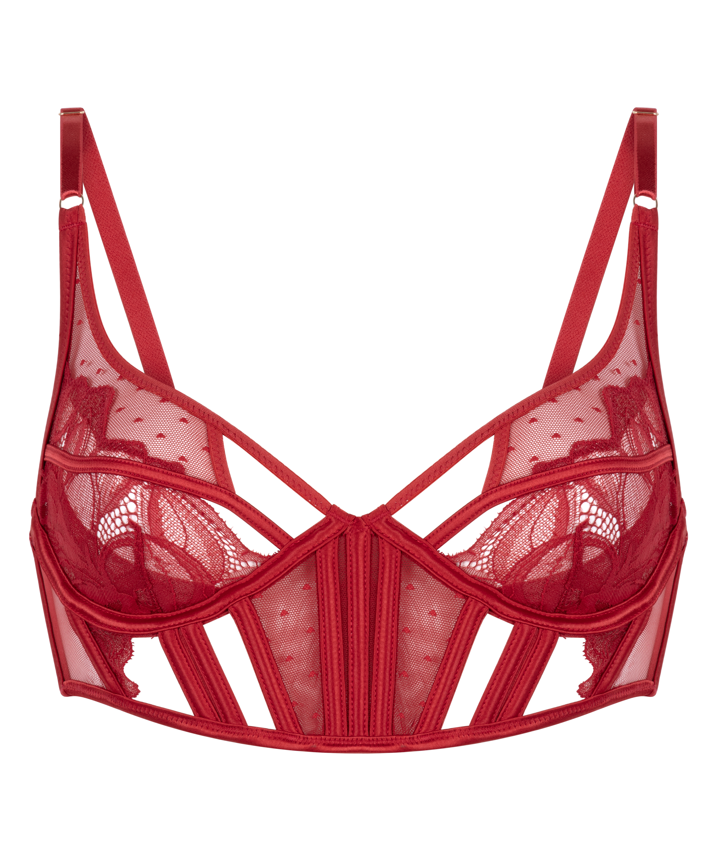 Vær selvsikker som aldri før med denne ufôrede BH-en! Blondedesign overalt, både foran og bak. Stroppene er justerbare for en perfekt passform. Match den med matchende truser!