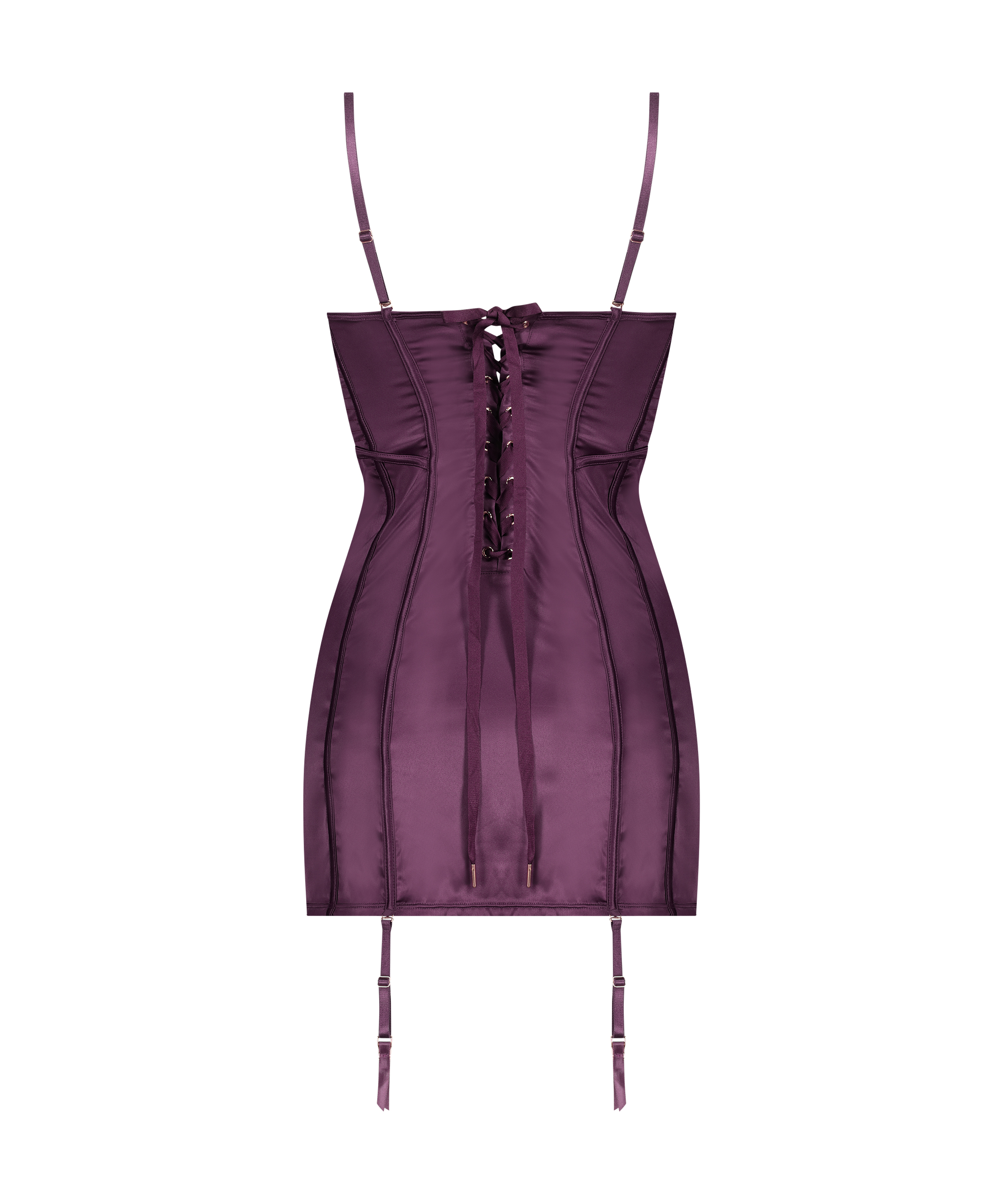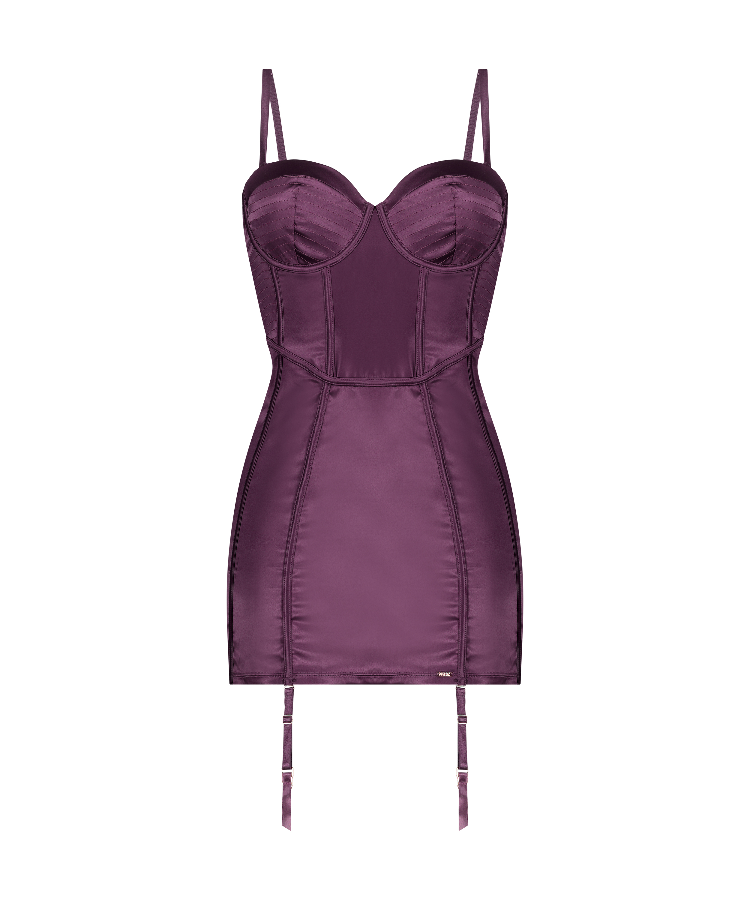 Denne fantastiske Demi-underkjolen er en krysning av en kjole og bustier, dette er et dekadent plagg som garantert vil styrke dine forførende evner. Det lange designet har spiler som gir deg en flatterende silhuett og vakker sateng som fremhever det feminine. Den har også avtakbare skulderstropper og strømpestropper, slik at du kan style den slik du vil. Kombiner med den matchende truse og et par strømper for å oppnå gjennomført look.