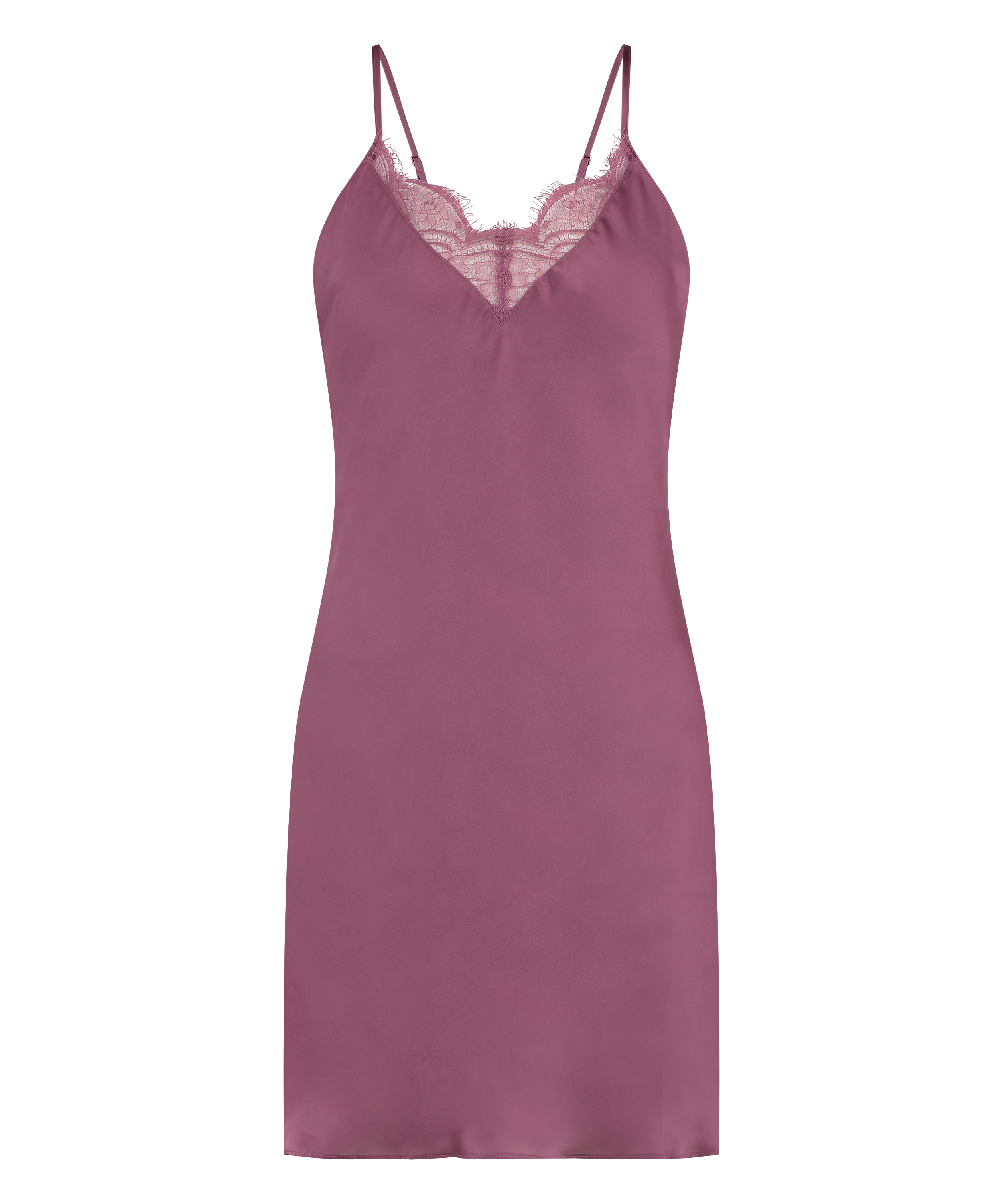 Denne slipkjolen bare må du ha i din elegante garderobe! Den er i sateng og har en nydelig V-utringning og mange vakre blondedetaljer. Kombiner med en matchende kimono for en gjennomført stil.