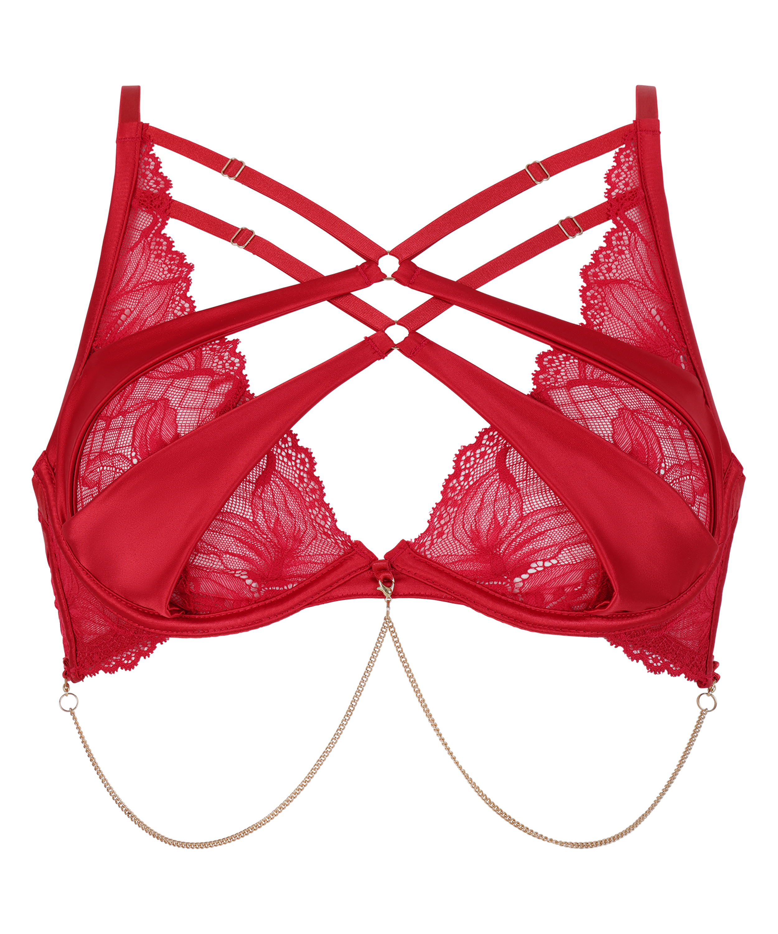 Denne sexy BH-en er bare helt fantastisk! Den har justerbare skulderstropper og skåler med spiler for å gi mer komfort. Blondene foran og den avtagbare gullenken gir denne BH-en en sexy look. Kombiner med de matchende trusene. Del av vår Private-kolleksjon.