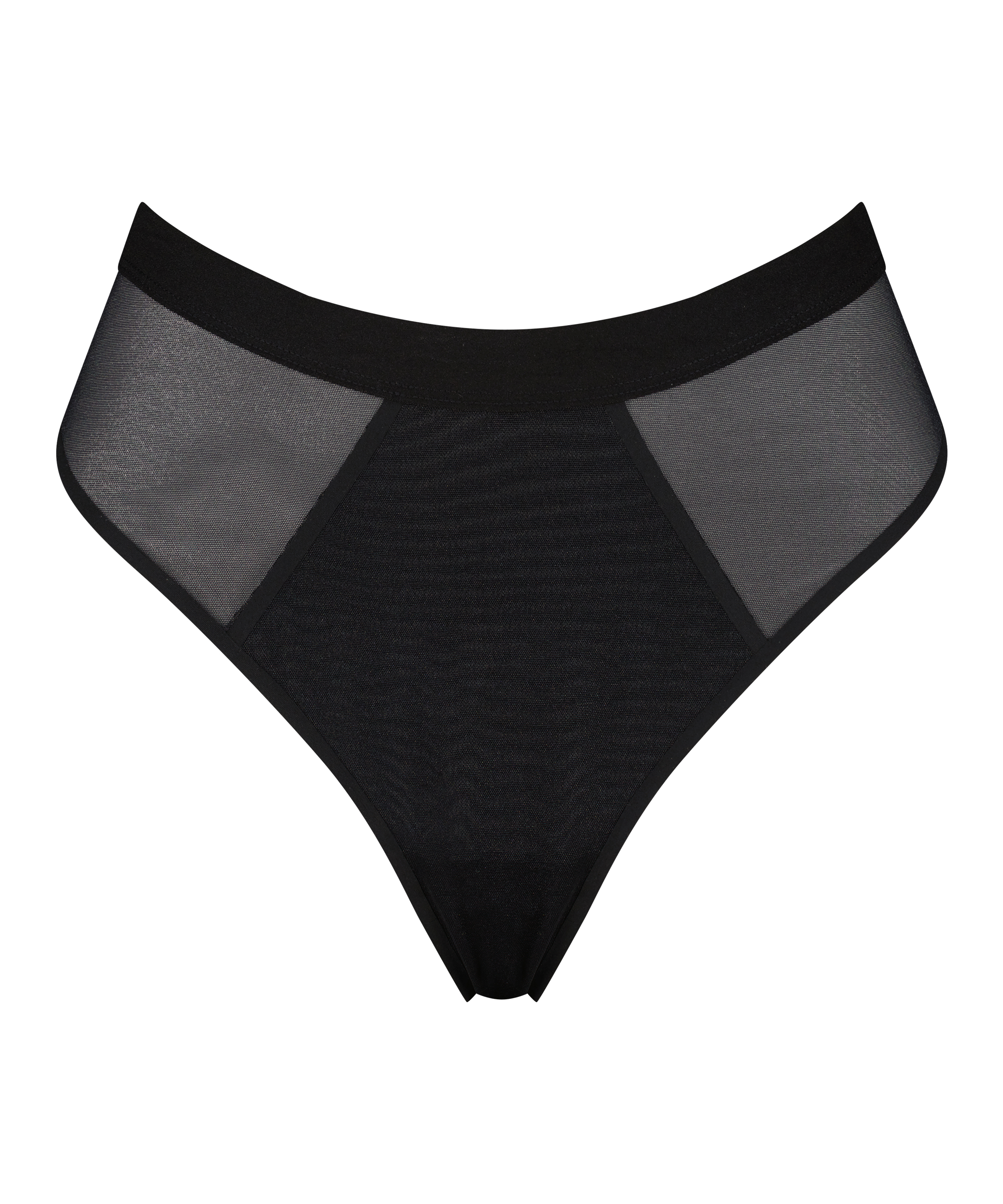 Usynlig G-streng Mesh med høy skjæring - Svart