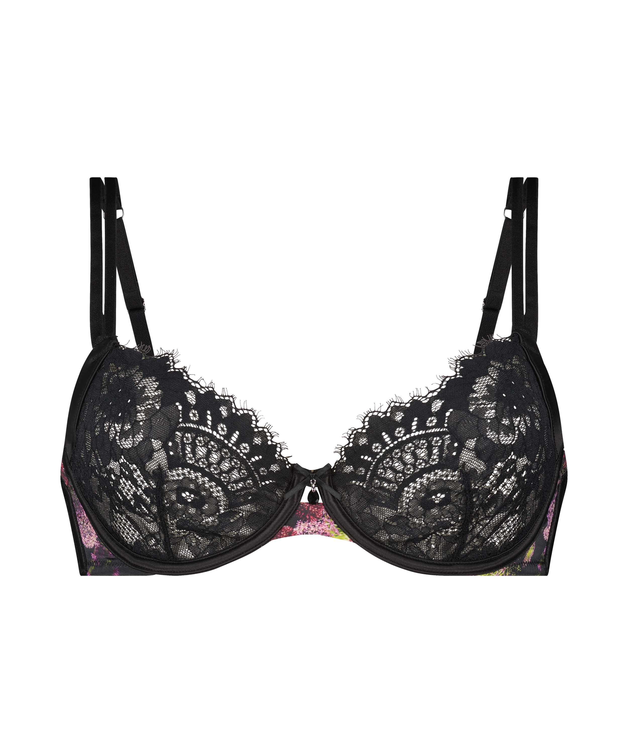Kos deg i denne luksuriøse blonde- og sateng-BH-en med en delikat dekorert sløyfe mellom skålene. Støtten fra bøylene og de justerbare stroppene er behagelige og du vil føle deg komfortabel hele dagen. Kombiner den sammen med Amelie-favorittene dine for å skape et virkelig blikkfang.