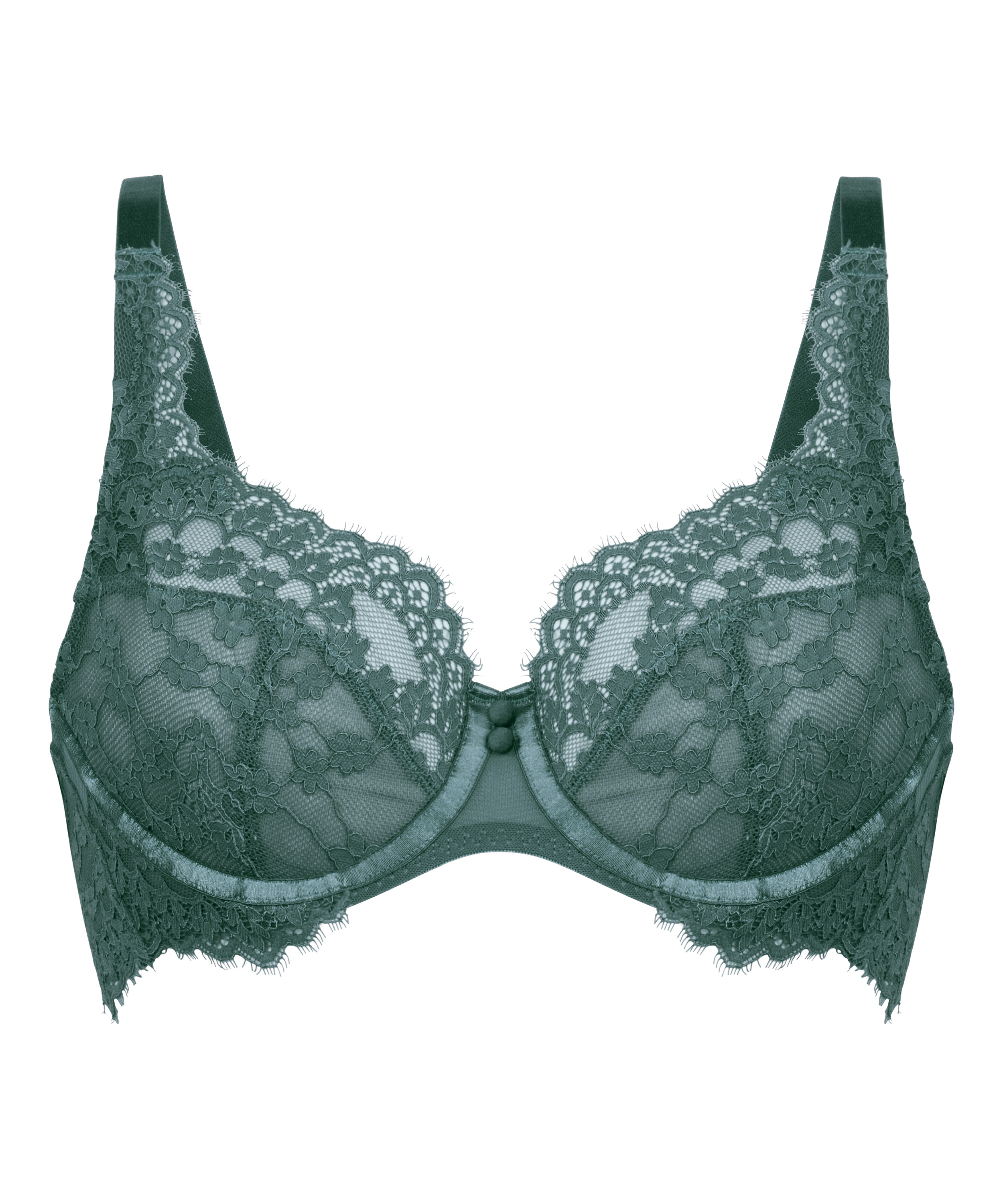 Se praktfull ut i denne BH-en! Den er halvt gjennomsiktig, uten polstring og er laget med masse blonder. Kombiner med matchende artikler og du har et komplett sett!