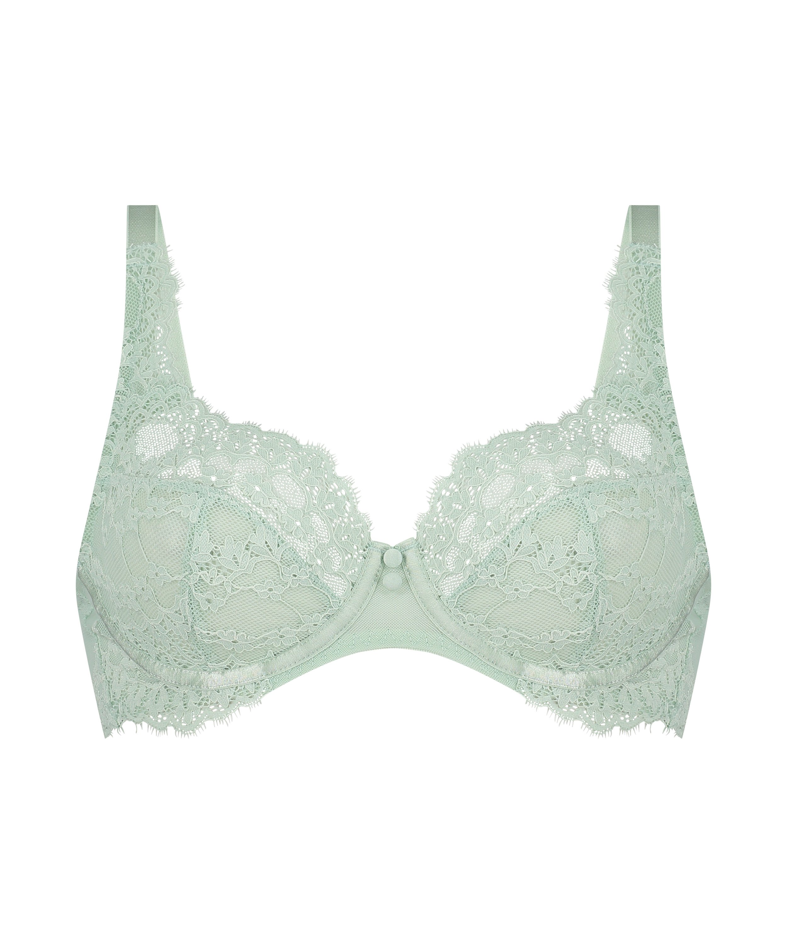 Se praktfull ut i denne BH-en! Den er halvt gjennomsiktig, uten polstring og er laget med masse blonder. Kombiner med matchende artikler og du har et komplett sett!