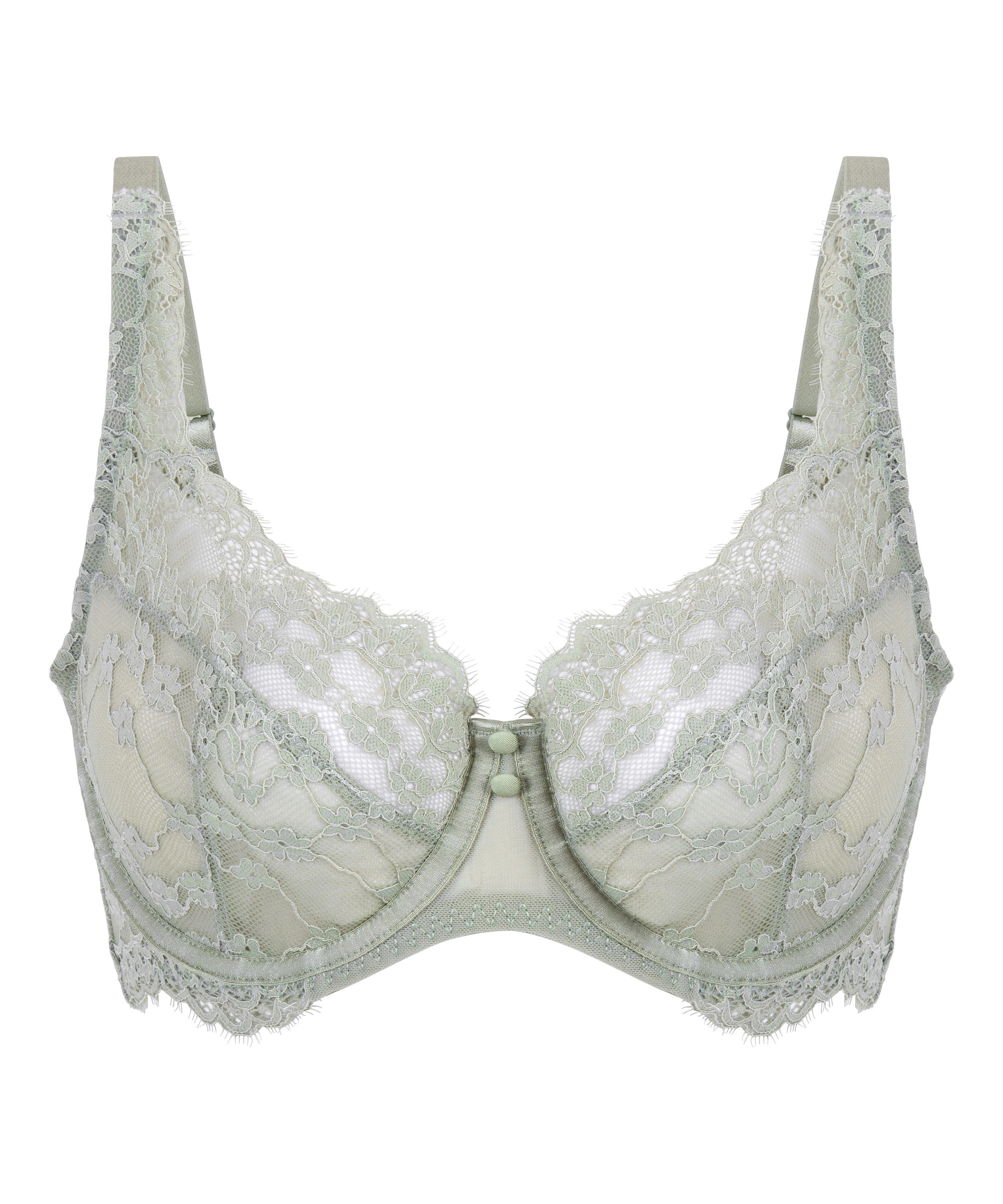 Se praktfull ut i denne BH-en! Den er halvt gjennomsiktig, uten polstring og er laget med masse blonder. Kombiner med matchende artikler og du har et komplett sett!