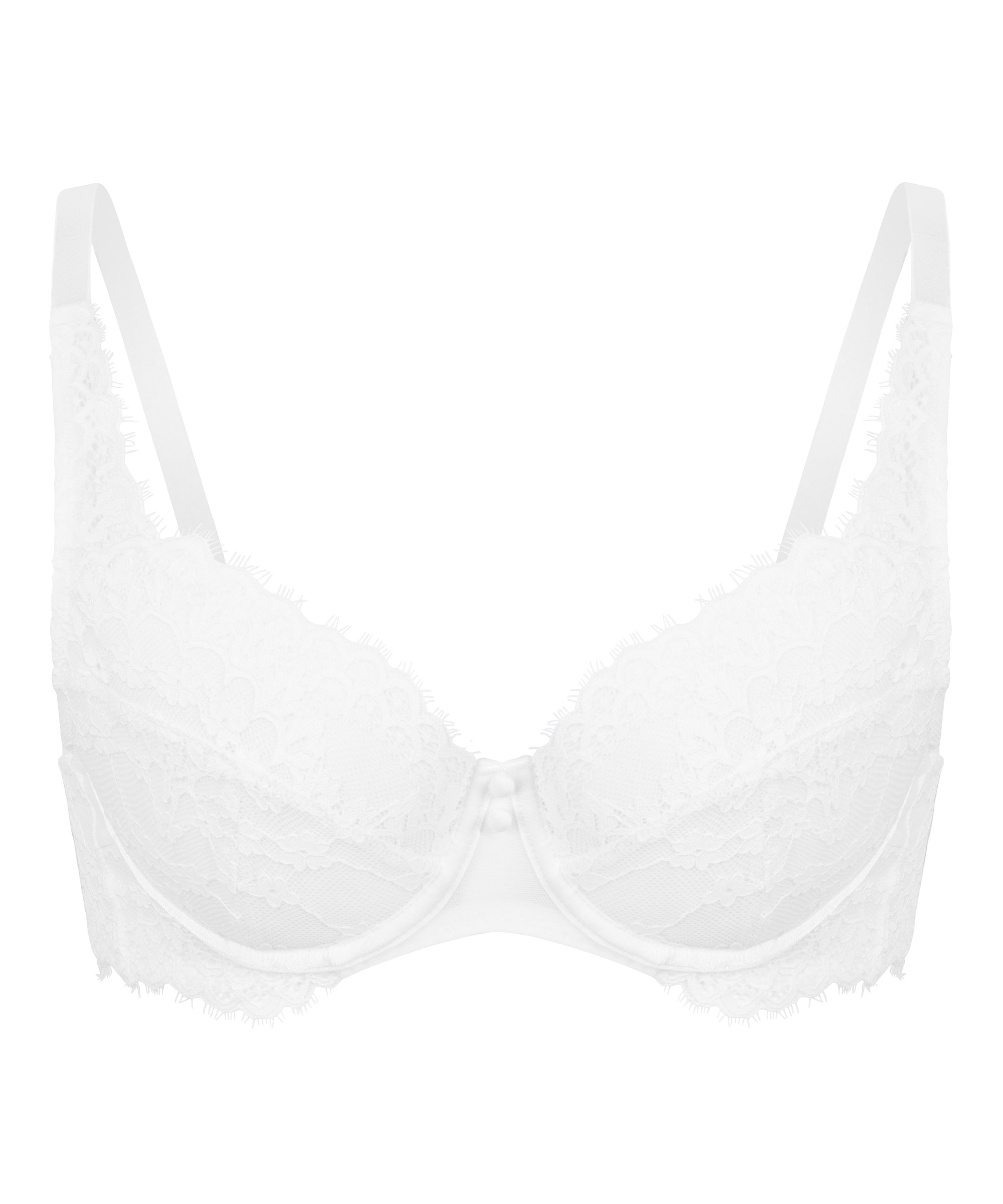 Se praktfull ut i denne BH-en! Den er halvt gjennomsiktig, uten polstring og er laget med masse blonder. Kombiner med matchende artikler og du har et komplett sett!