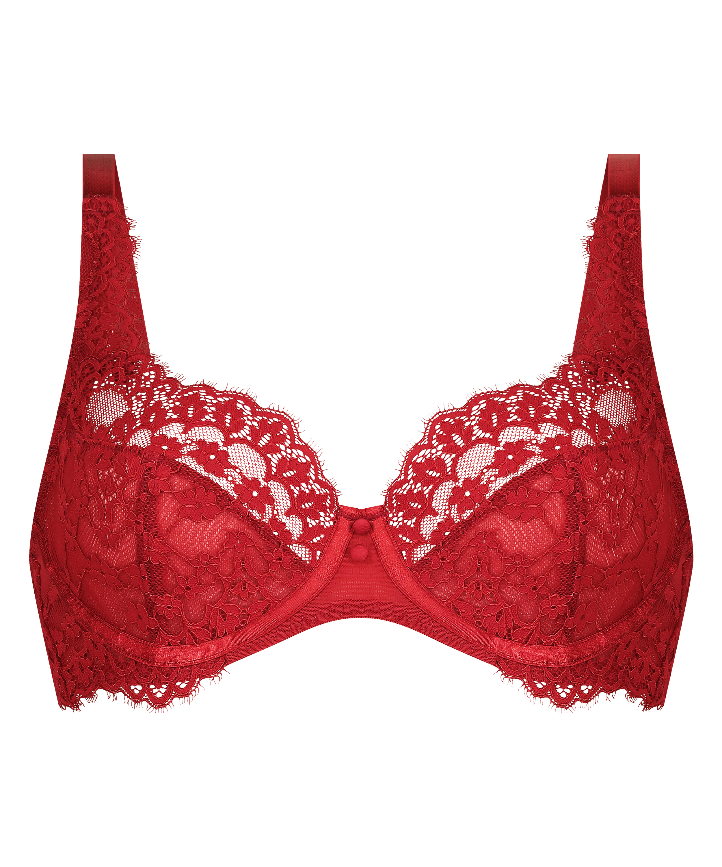 Se praktfull ut i denne BH-en! Den er halvt gjennomsiktig, uten polstring og er laget med masse blonder. Kombiner med matchende artikler og du har et komplett sett!