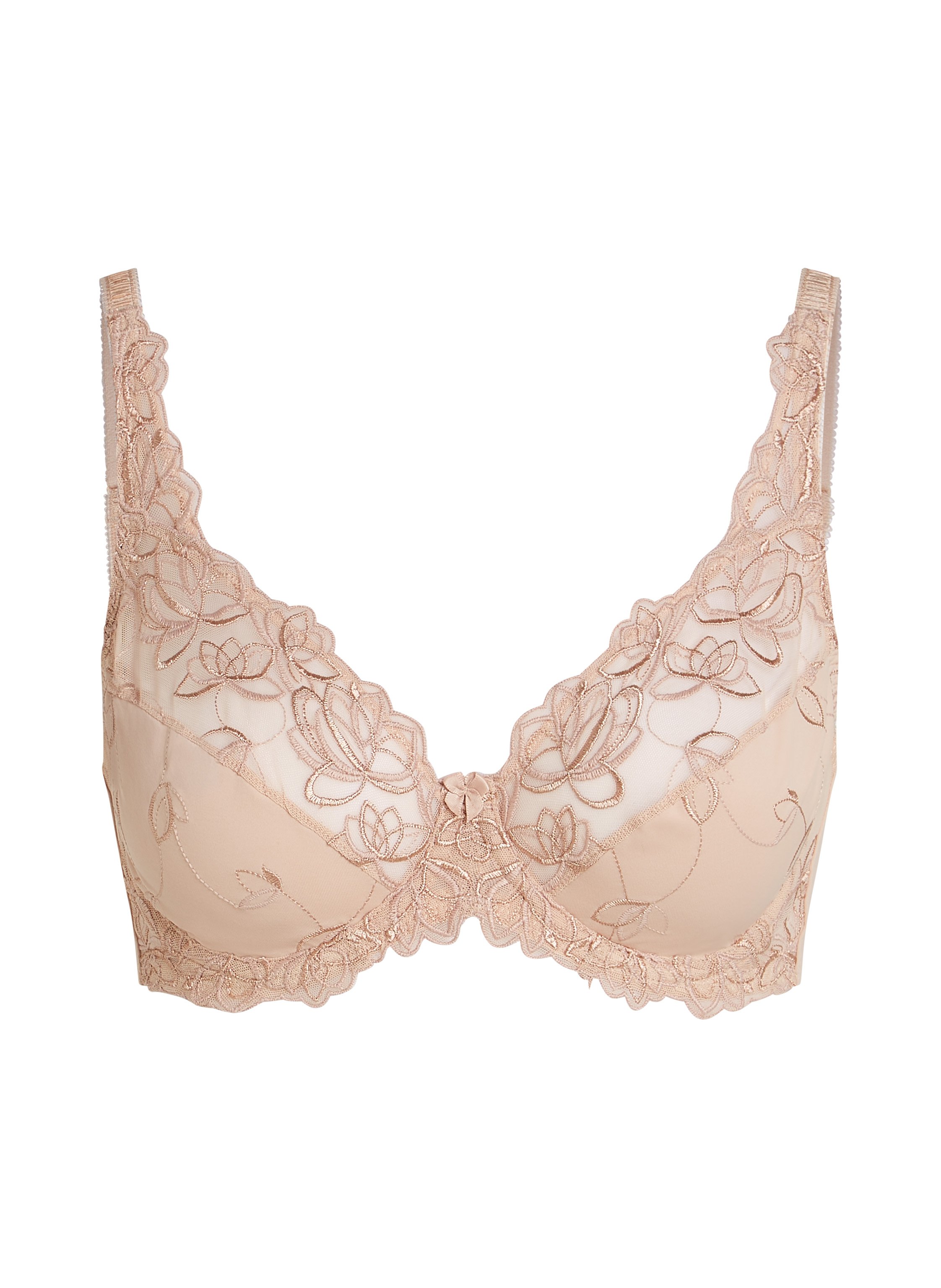 Denne uforete BH-en med bøyle er i ugjennomsiktig stoff med halvt gjennomsiktige blonder øverst. Skålene er dekorert av et blomstermønster. Kombiner med den matchende Diva-trusen og få et helt sett.