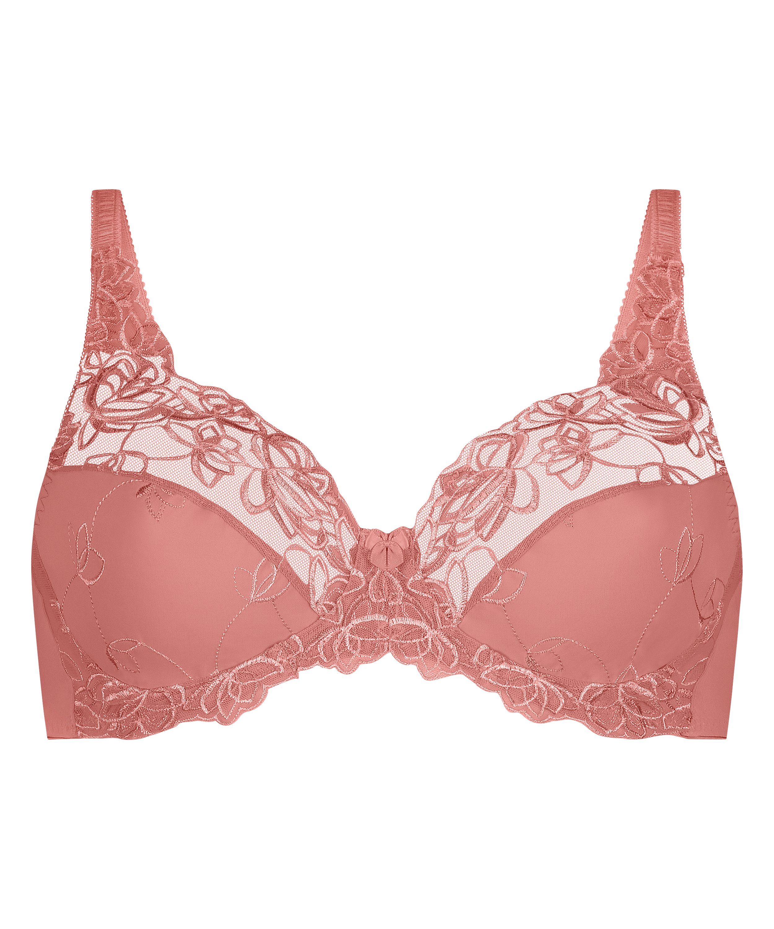 Denne uforete BH-en med bøyle er i ugjennomsiktig stoff med halvt gjennomsiktige blonder øverst. Skålene er dekorert av et blomstermønster. Kombiner med den matchende Diva-trusen og få et helt sett.