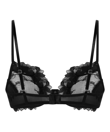Du vil skinne i denne praktfulle BH-en! BH-en har spiler og er ikke polstret. Den har massevis av blonder og er forseggjort med et vakkert mønster. Kombiner med en matchende truse.