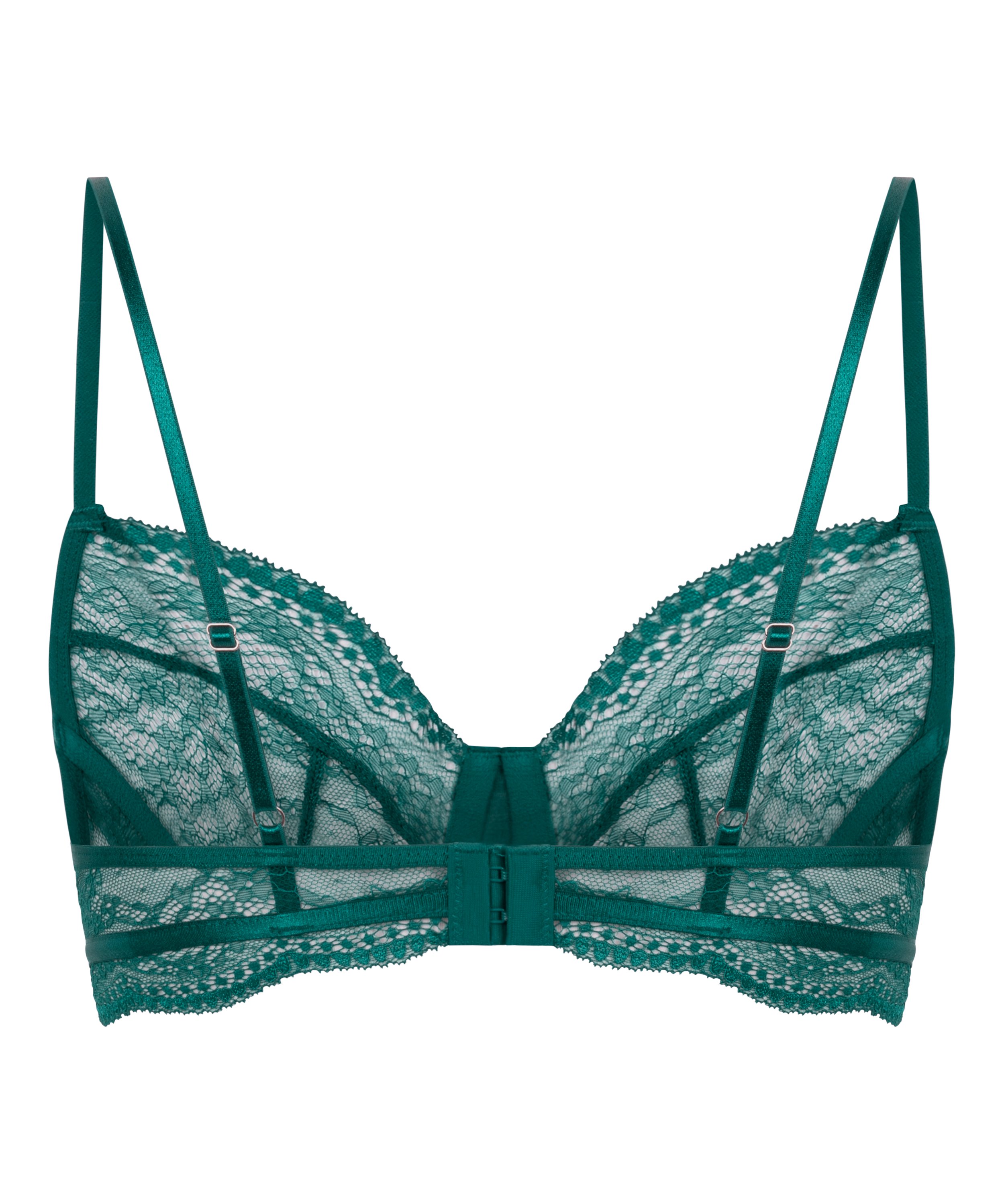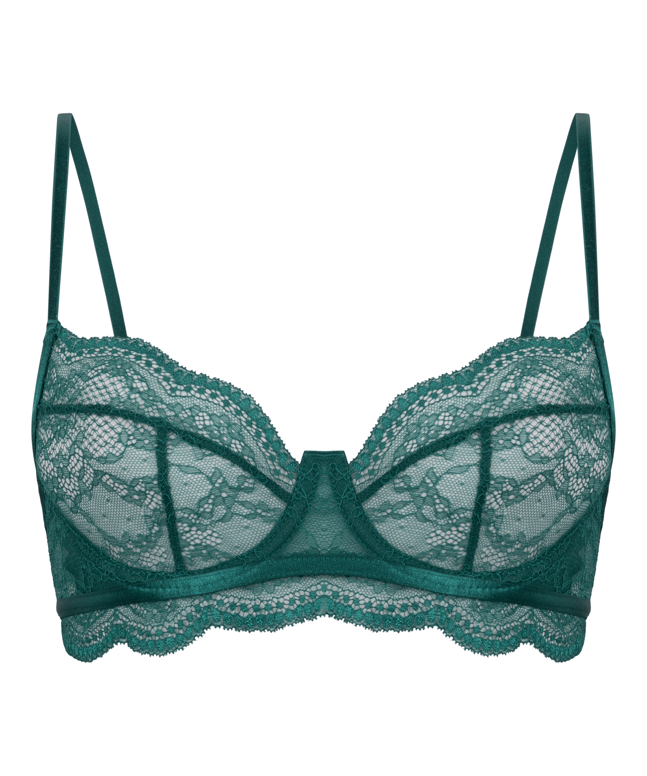 En bøyle-BH uten polstring viser frem kurvene dine og gir akkurat den rette støtten. BH-en er kledd med blonder for en fabelaktig look! Kombiner med den matchende trusen og få et fullstendig sett!