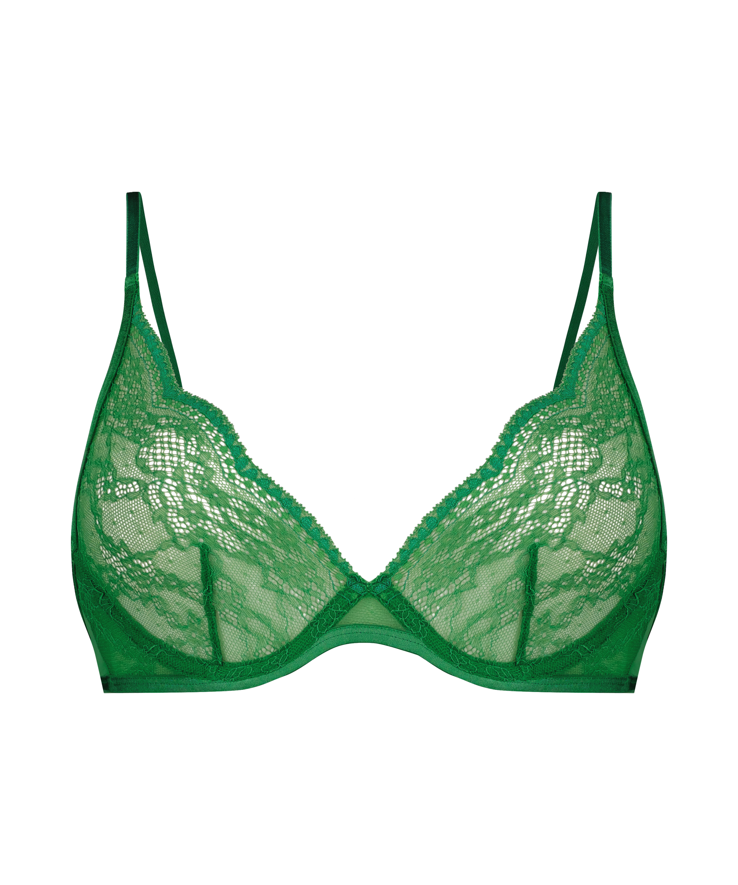 Du vil skinne i denne praktfulle BH-en! BH-en har spiler og er ikke polstret. Den har massevis av blonder og er forseggjort med et vakkert mønster. Kombiner med en matchende truse.