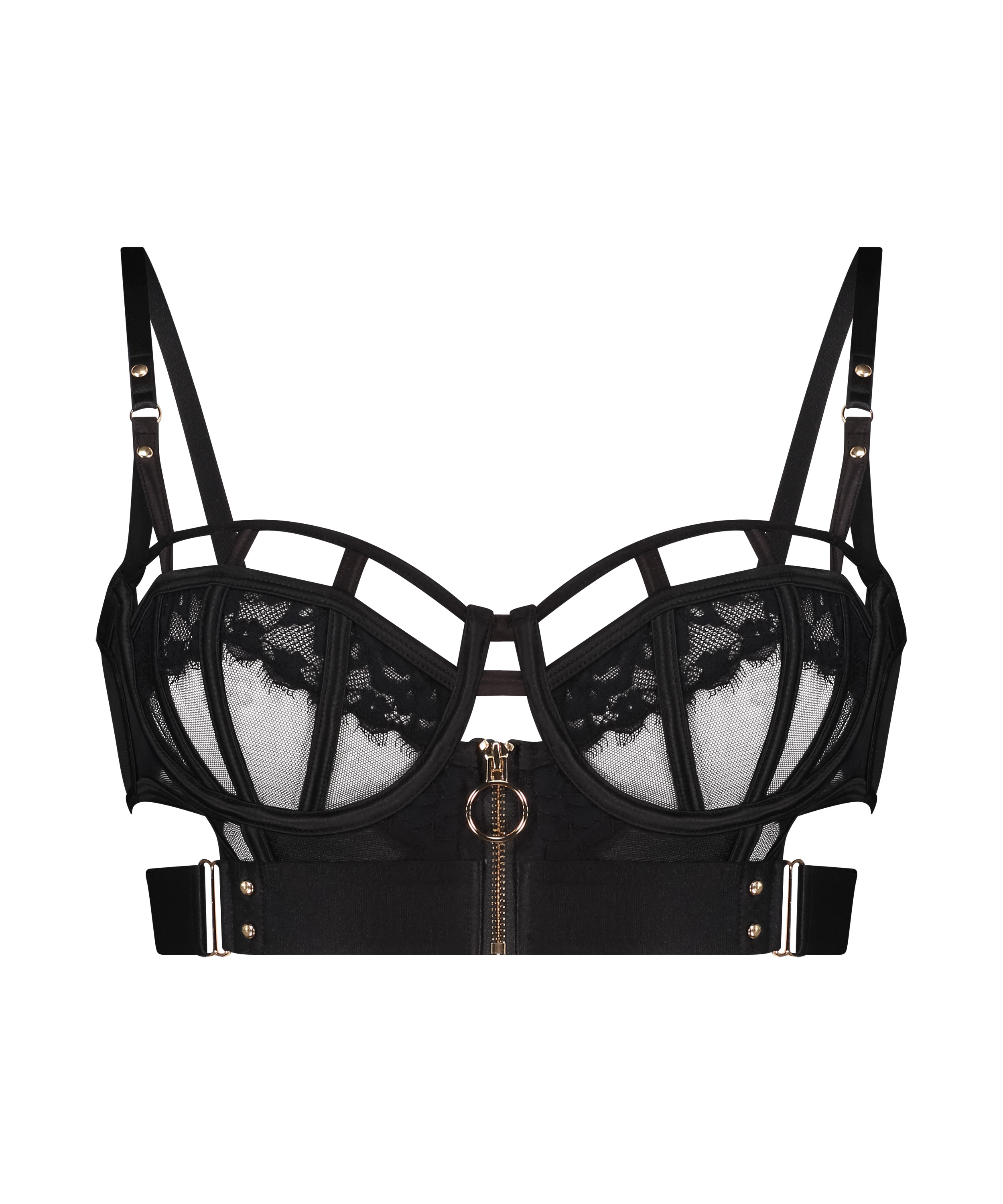 Denne BH-en skaper en supersexy utstråling. BH-en har bøyle og er ikke polstret. Blondene og de gylne detaljene fullfører looken din. Kombiner med matchende varer, og du har et komplett sett. Del av Private-kolleksjonen.