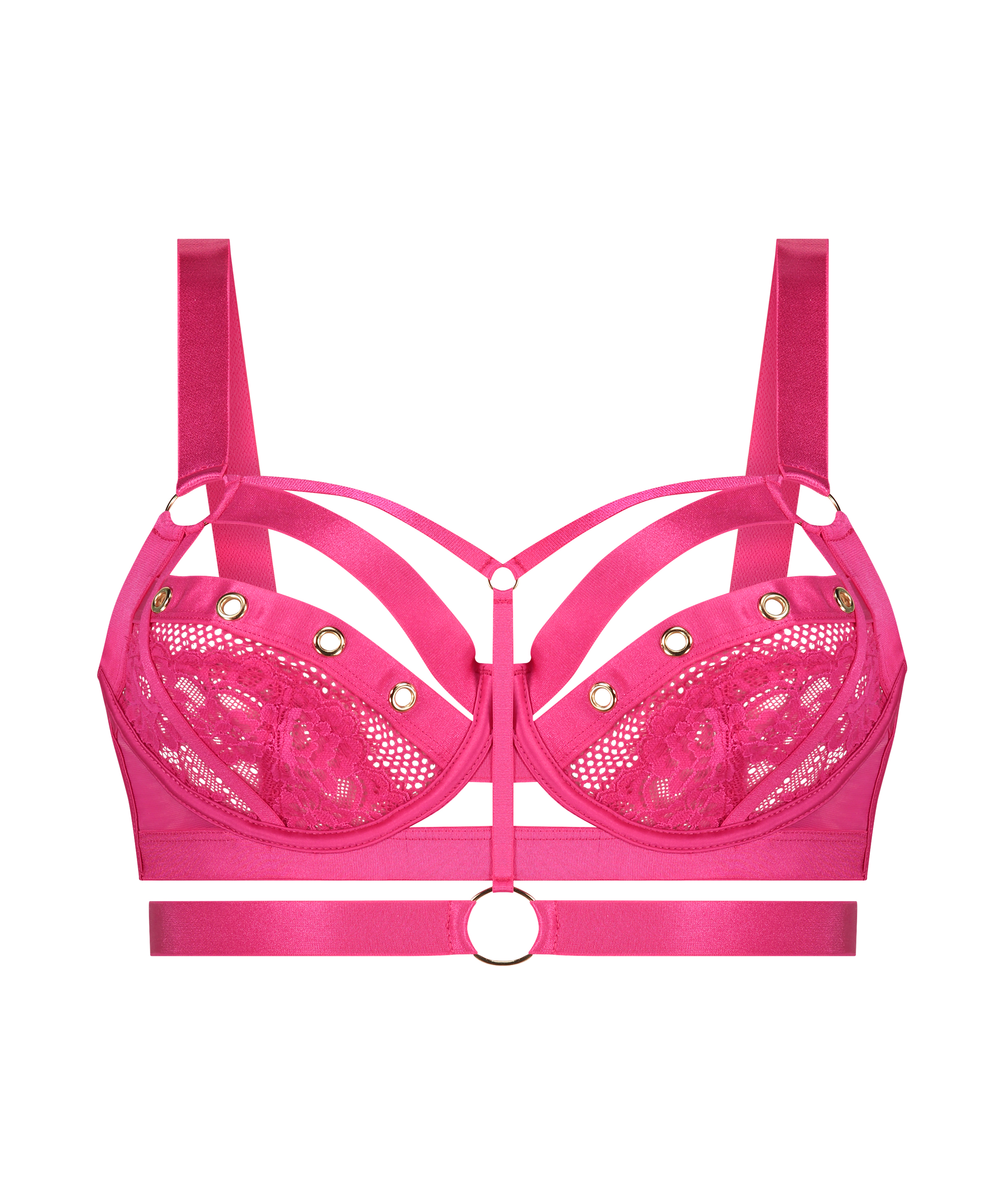 Er du i et utfordrende humør? Da tar du på deg denne sexy BH-en! Denne BH-en er nesten helt dekket av straps. Skålene er av blonder. Dessuten har den en bred lukning bak, noe som gjør at den sitter veldig behagelig. Kombiner med den matchende trusen fra vår Private-kolleksjon og du har en gjennomført look!
