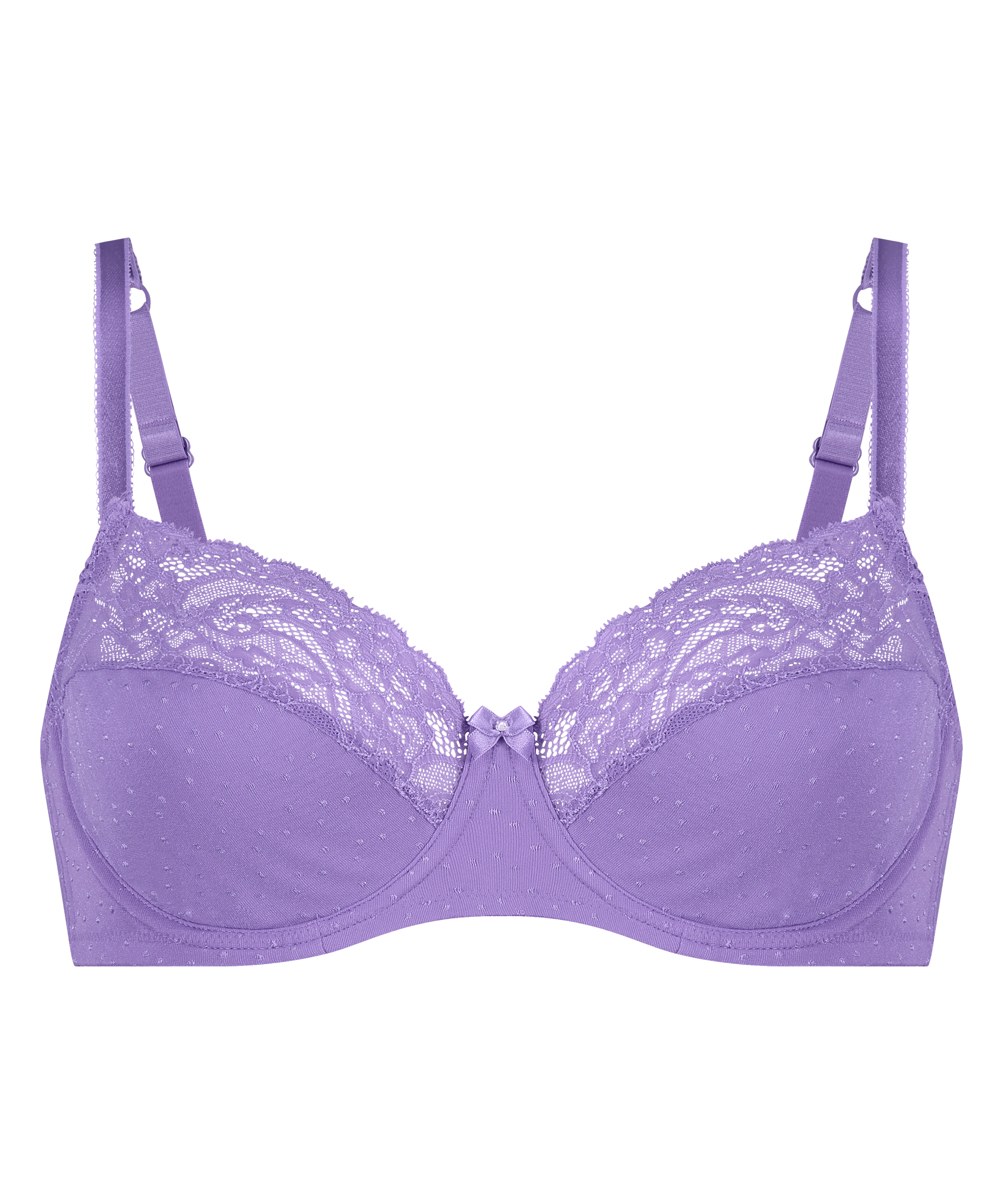 Denne BH-en med bøyle er ekstra behagelig. Helskålene passer til nesten alle kvinner. Denne BH-en gir deg et elegant utseeende og er i tillegg veldig behagelig. Merk: Skålstørrelsene F og større har en ekstra stripe stoff øverst på skålene for å gi mer støtte.