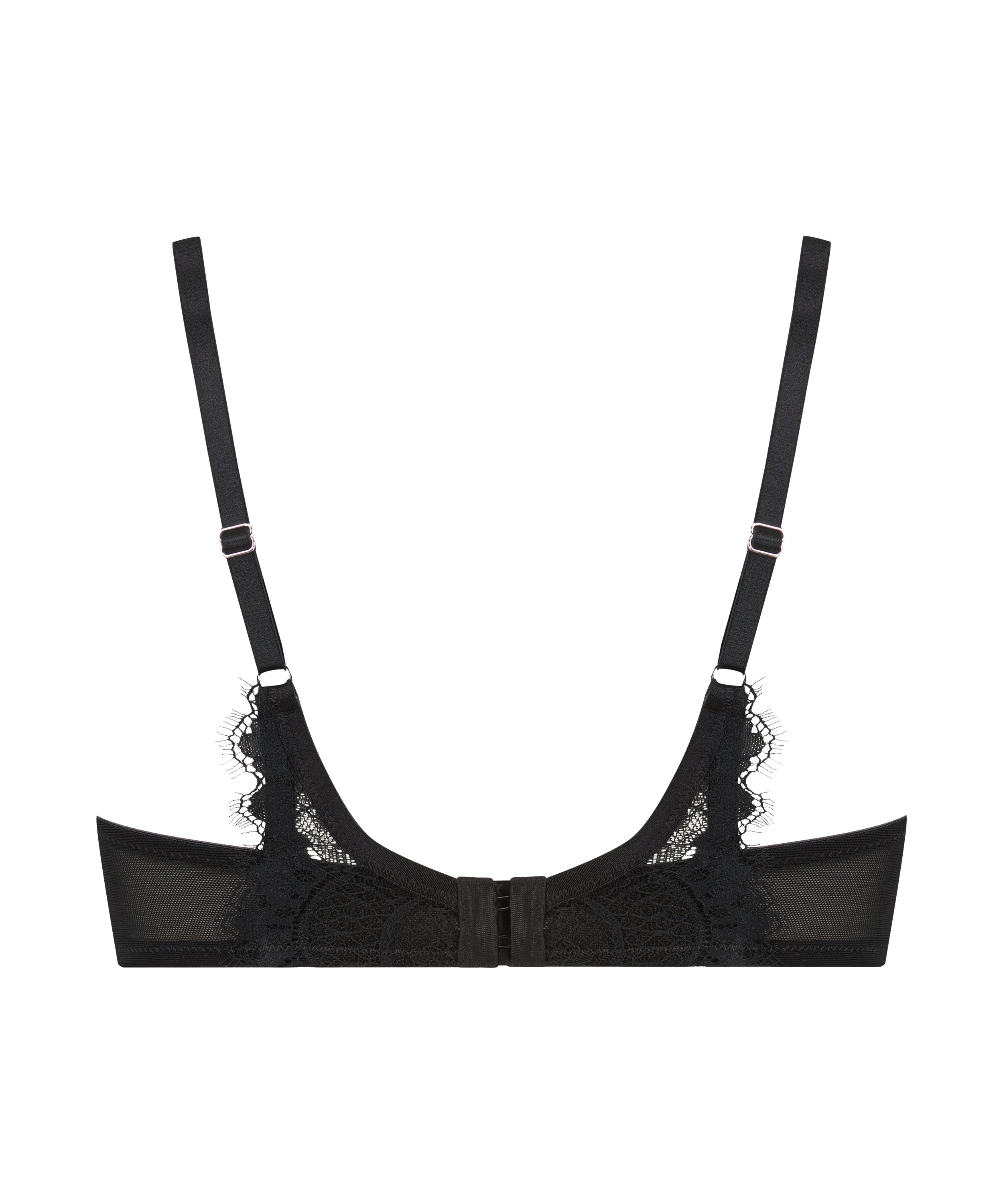Føl deg uimotståelig i denne seriøst sexy polstrede spile-BH-en med blondedetaljer. Denne BH-en har stropper som du kan bruke slik du selv ønsker, blonder bak på ryggen og en søt sløyfe samt strassdekorasjon. Velg et fantastisk sett og kombiner med matchende undertøy for den ultimate romantiske stilen.
