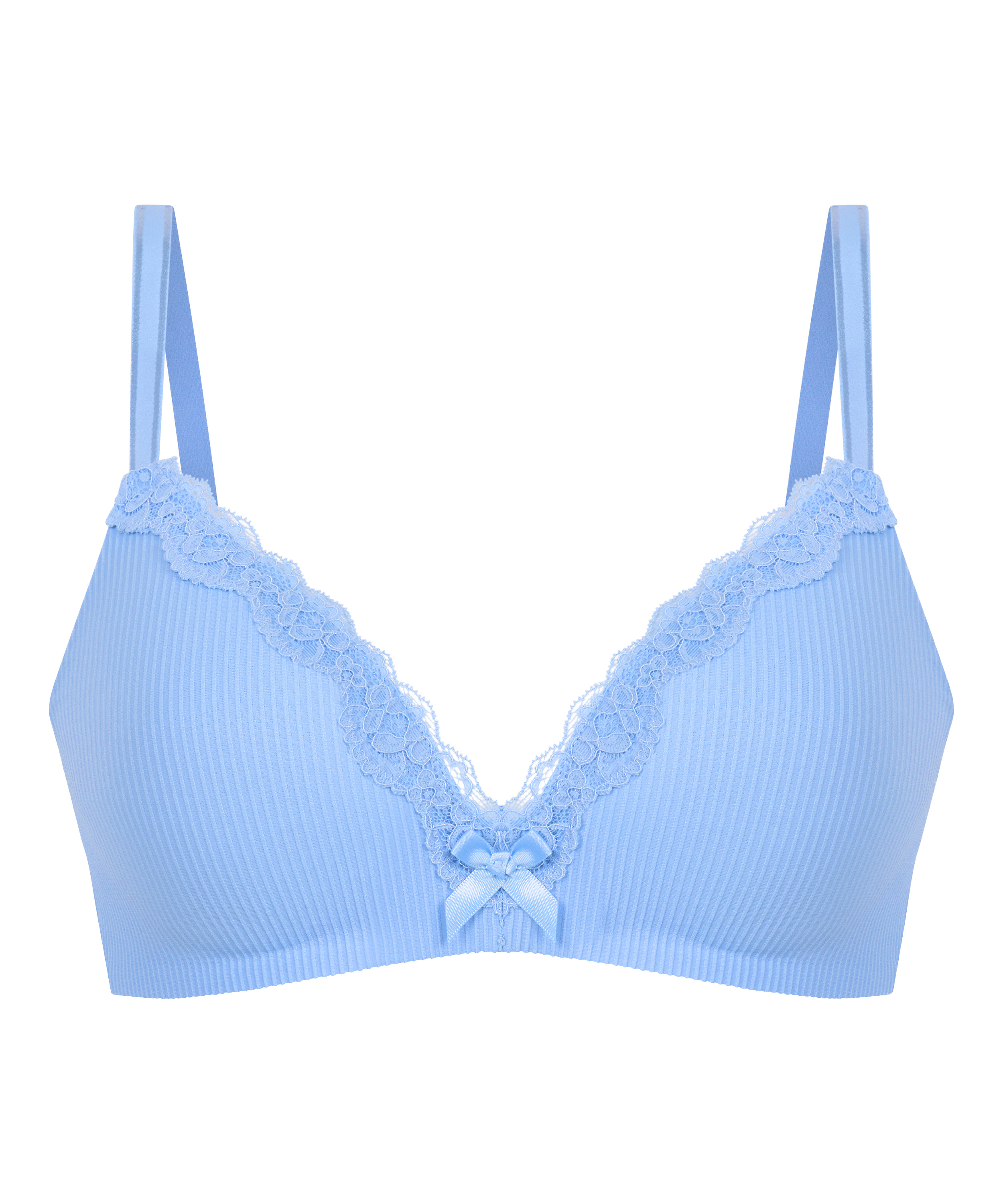 En pen BH med vakker blondekant og en søt sløyfe foran. BH-en er polstret og er uten spiler. Kombiner med en matchende truse.