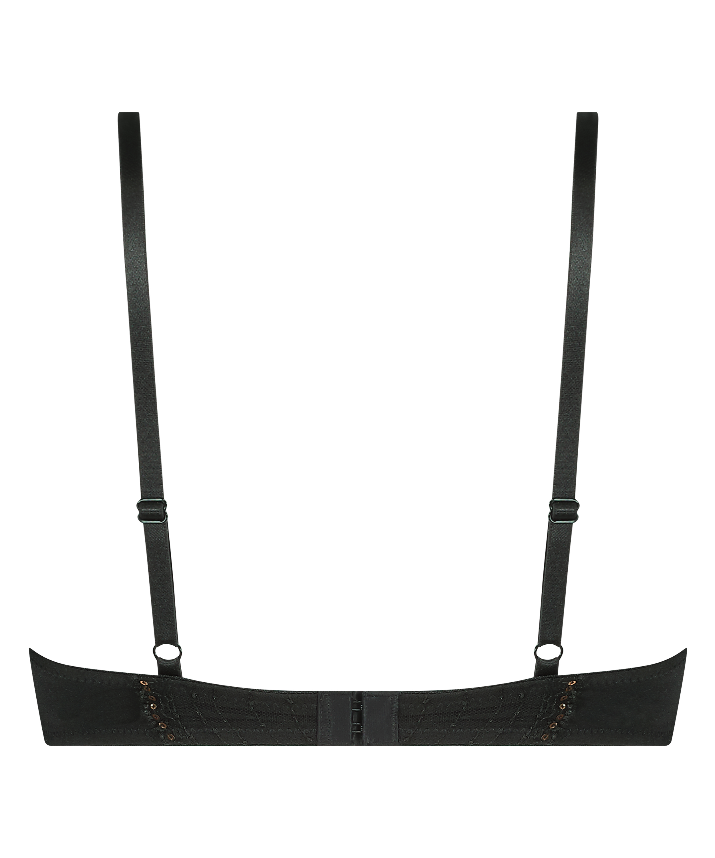 Denne polstrede bh-en kombinerer en flatterende passform med delikate blonder og et hint av glitrende paljetter! Det kryssede blondedetaljen foran gir en flørtende look, mens de glatte koppene sikrer en behagelig følelse hele dagen. Kombiner med matchende produkter for et komplett og fantastisk sett!