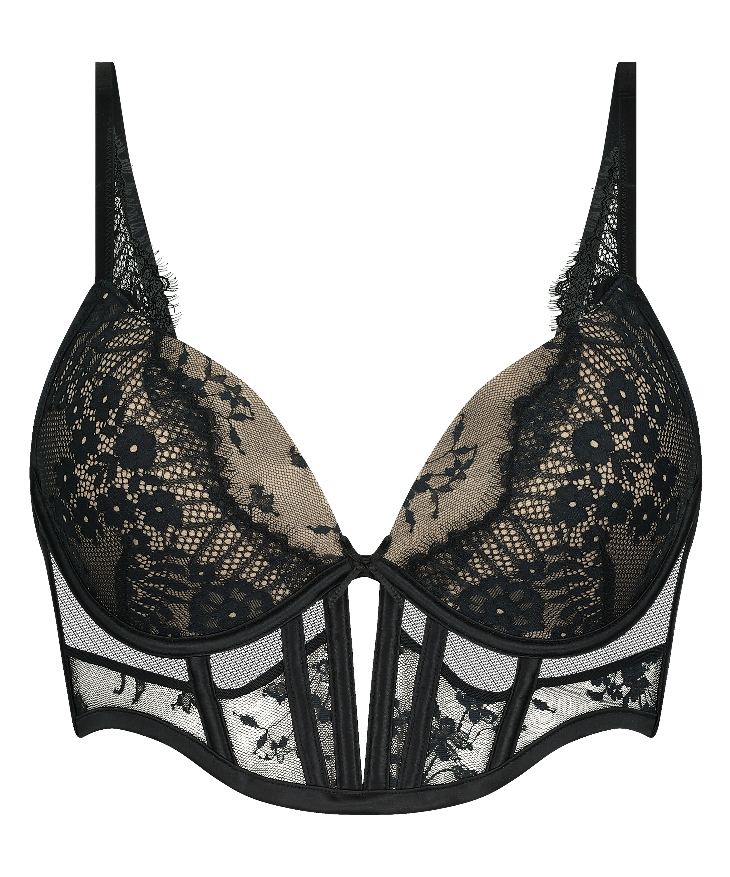 Vatterte longline push-up bøyle-bh Daphne - Svart