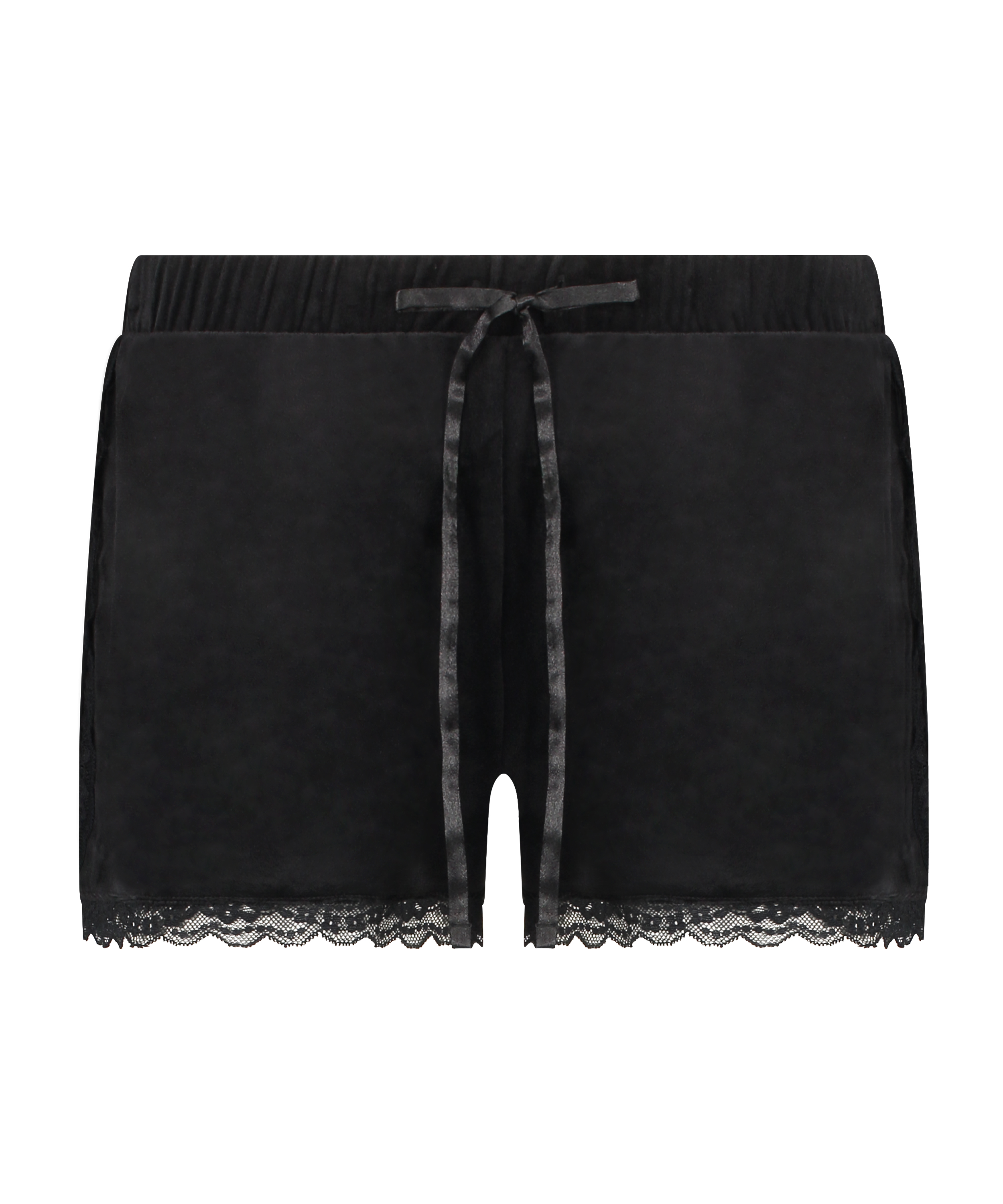 Føl deg supersexy og feminin i denne shortsen laget av fløyelsstoff med blondedetaljer. Kombiner med matchende plagg for å få et komplett antrekk.