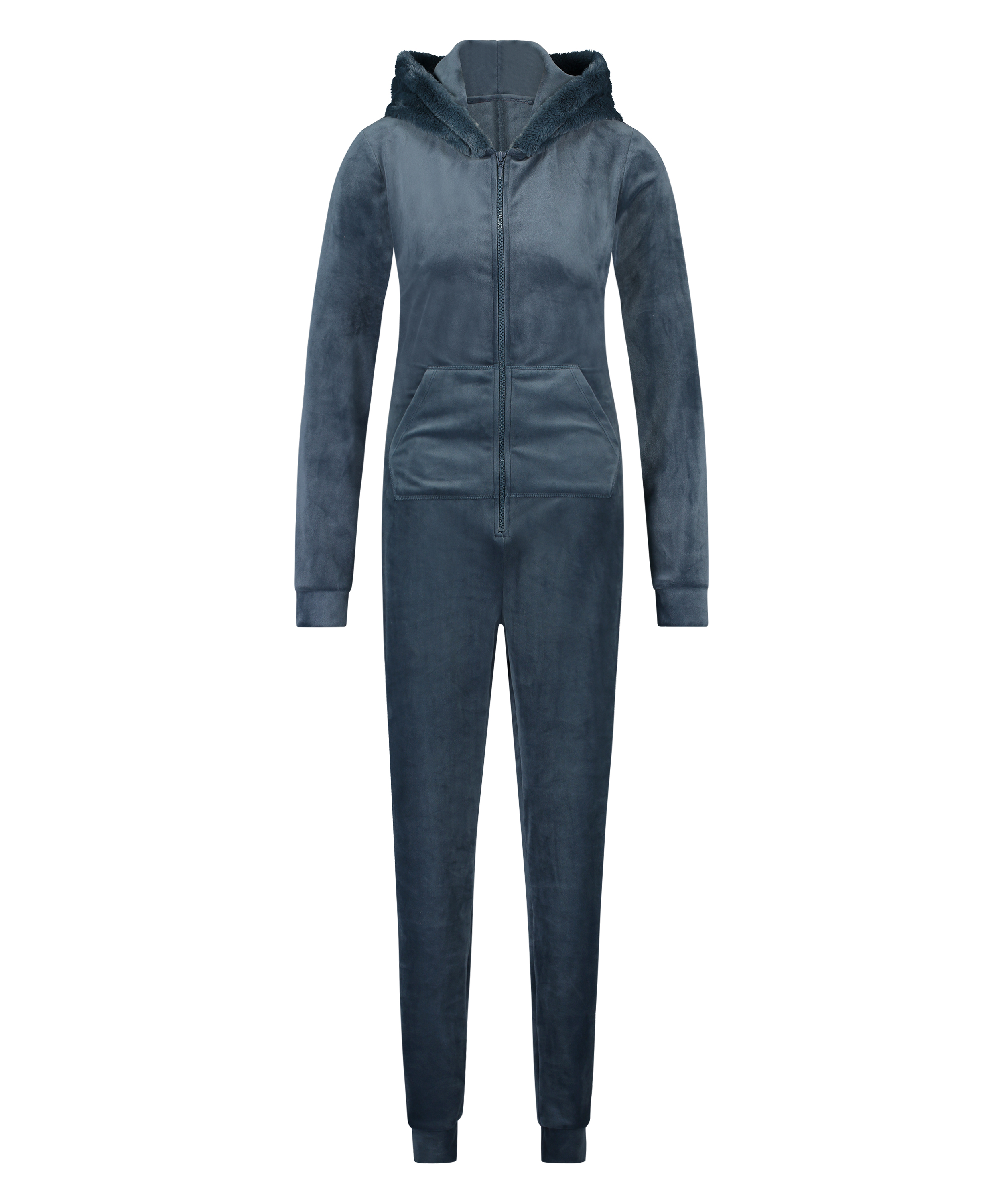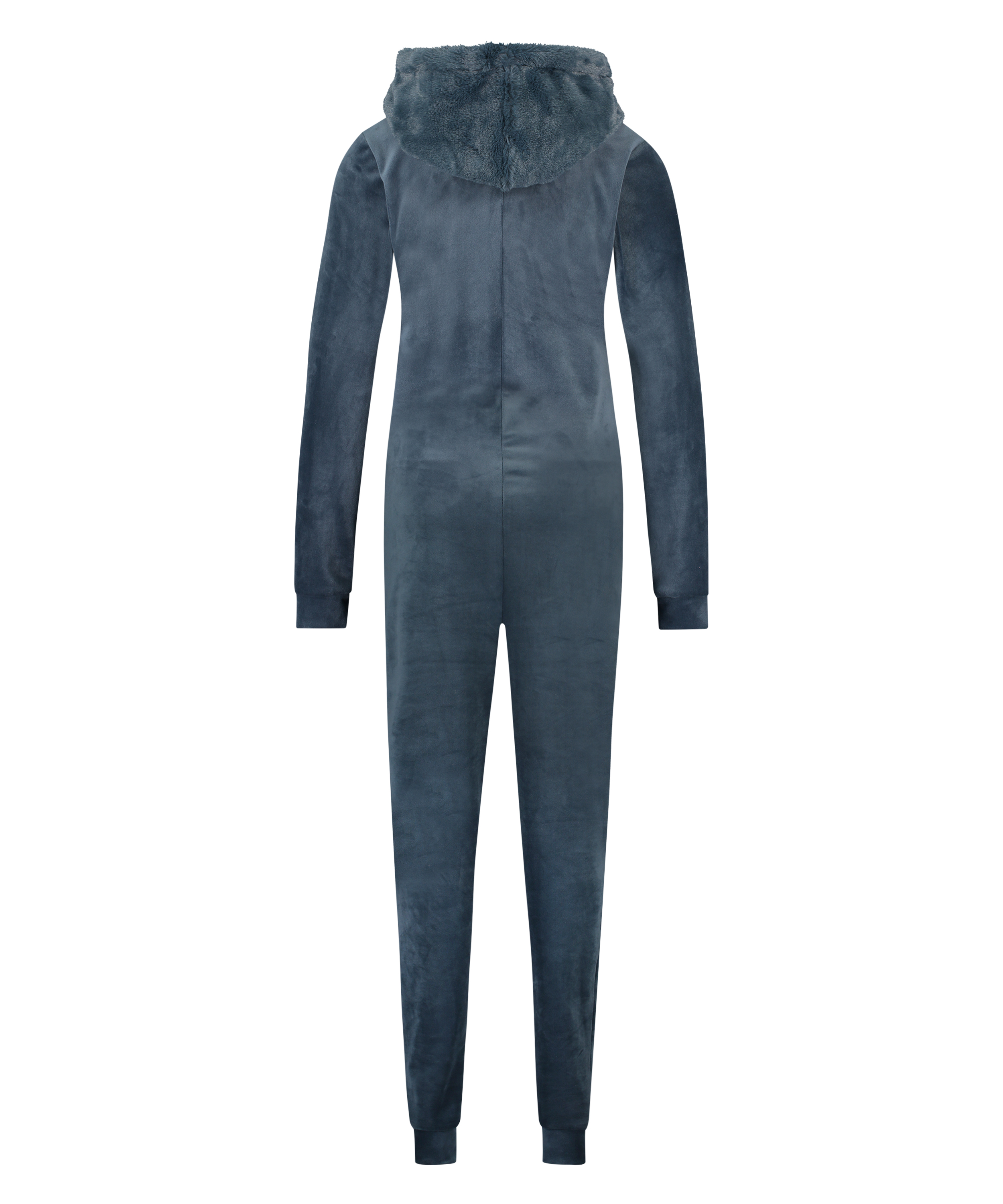 Hanging out on the sofa is really comfortable in this super soft velvet onesie. With front pockets and a zip closure. Finished with a cosy fluffy hood.