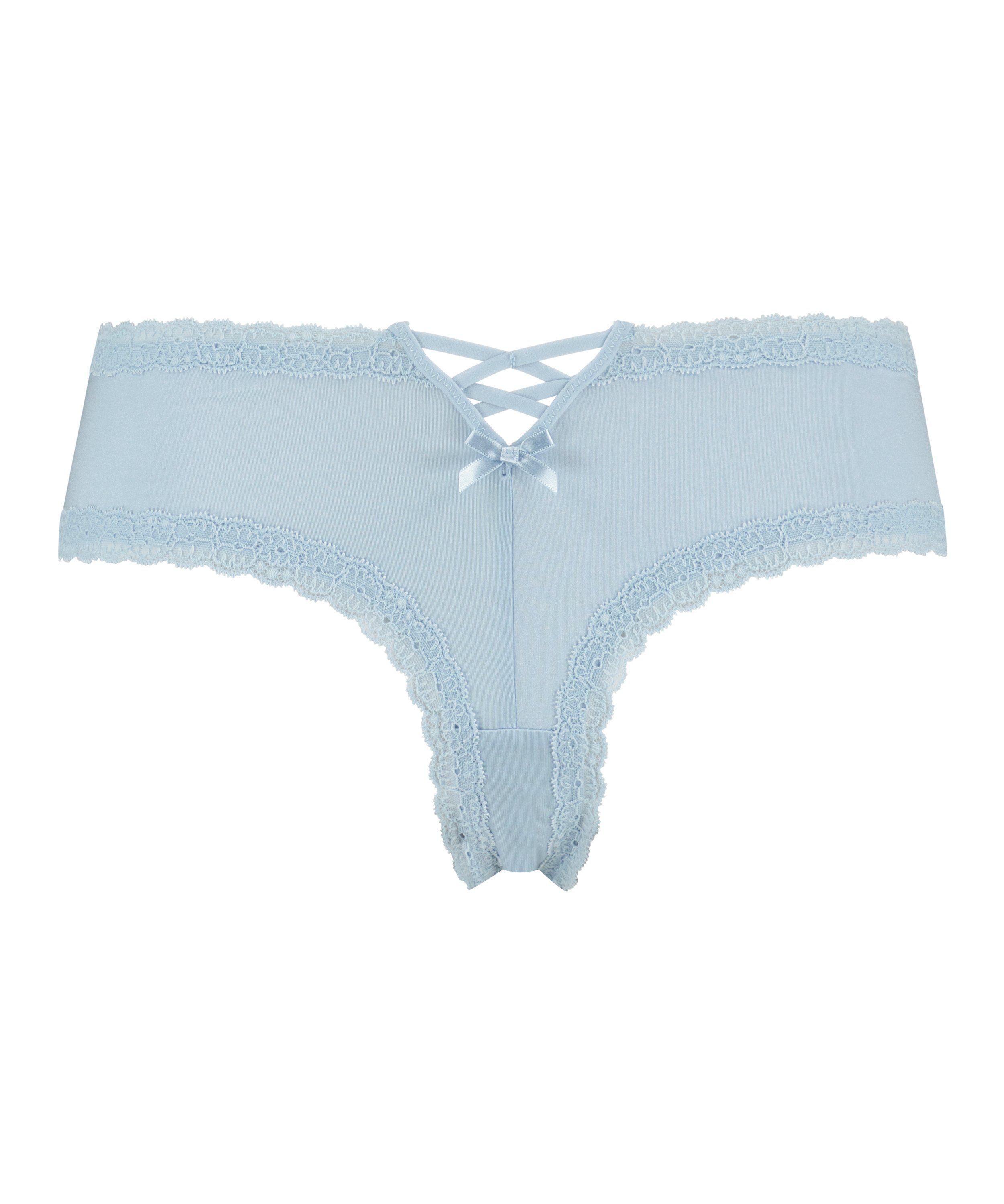 Skap en sexy look med denne vakre brasilianske trusen! Er laget av microfiber og blonder og har strappy detaljer øverst. Kombiner med matchende artikler og du har et komplett sett!