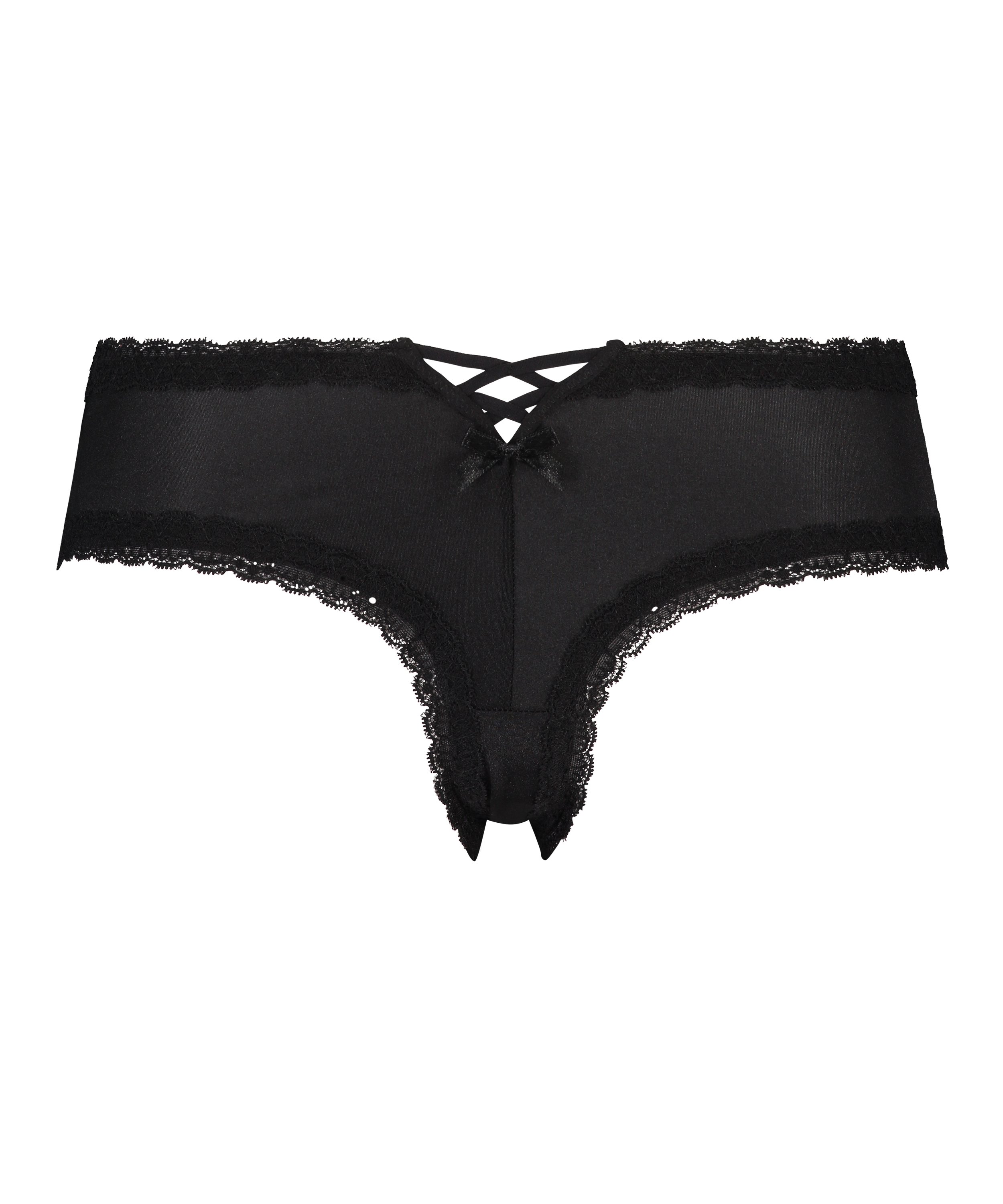 Skap en sexy look med denne vakre brasilianske trusen! Er laget av microfiber og blonder og har strappy detaljer øverst. Kombiner med matchende artikler og du har et komplett sett!