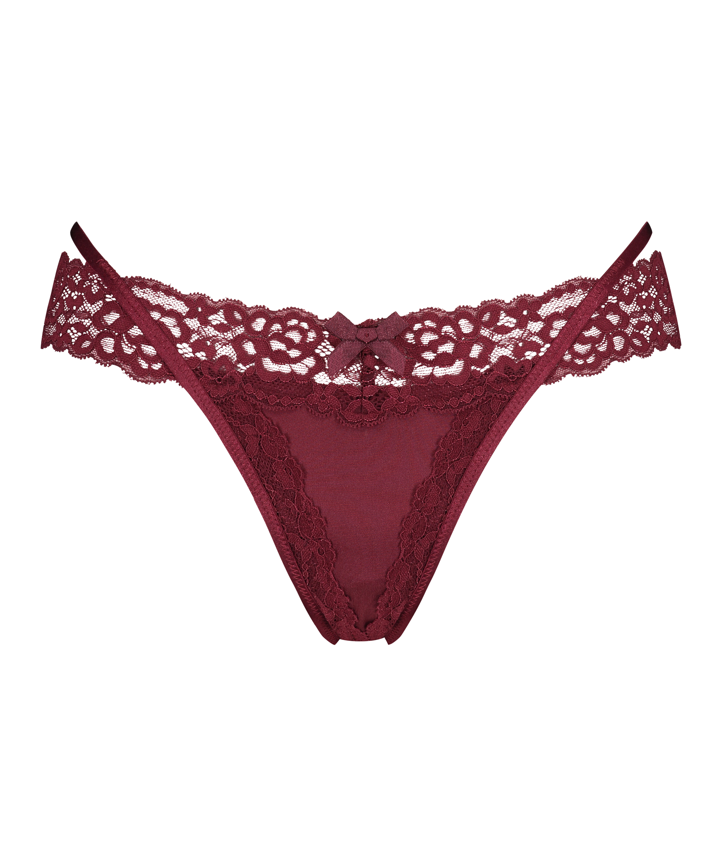 Blondene gjør denne lave tangaen sexy. Den har en sløyfe foran og et glitrende prikkemønster.