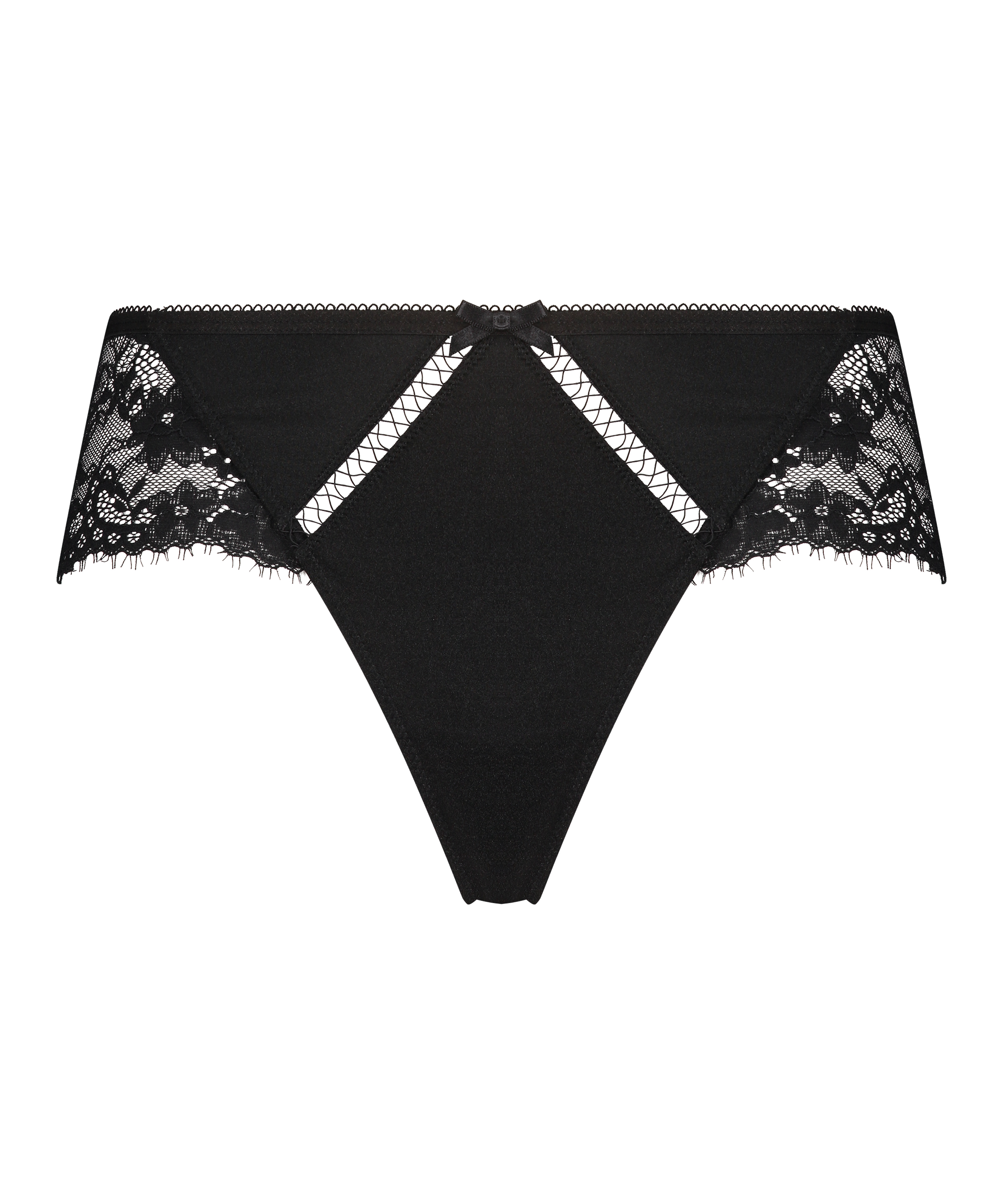 Hvor sexy er ikke denne hipster-stringen. Trusen har små cut-out-detaljer foran og masse blonder på sidene. Dessuten er det innvevd et skinnende mikrostoff. Kombiner med matchende BH og du har et vakkert sett.